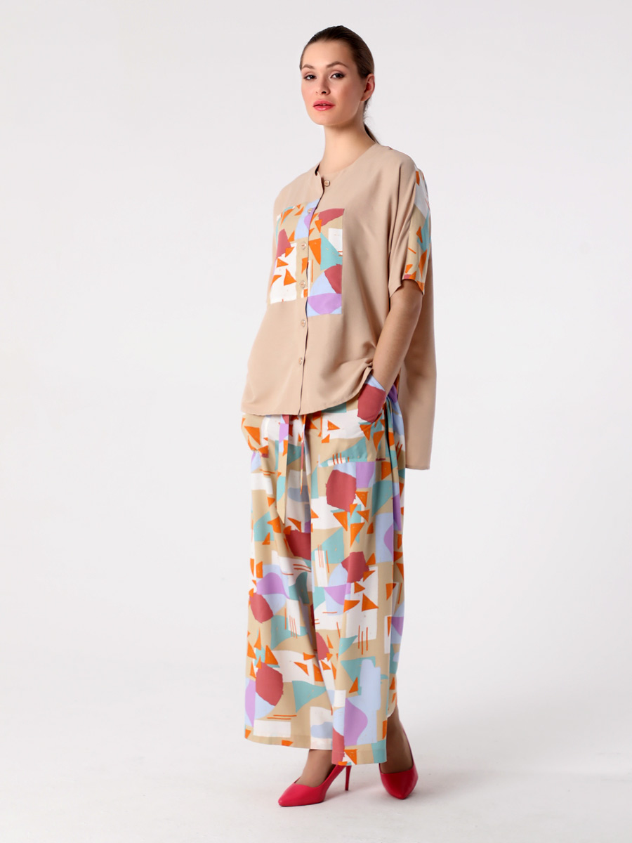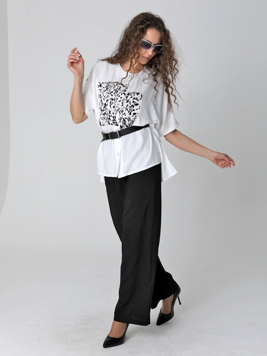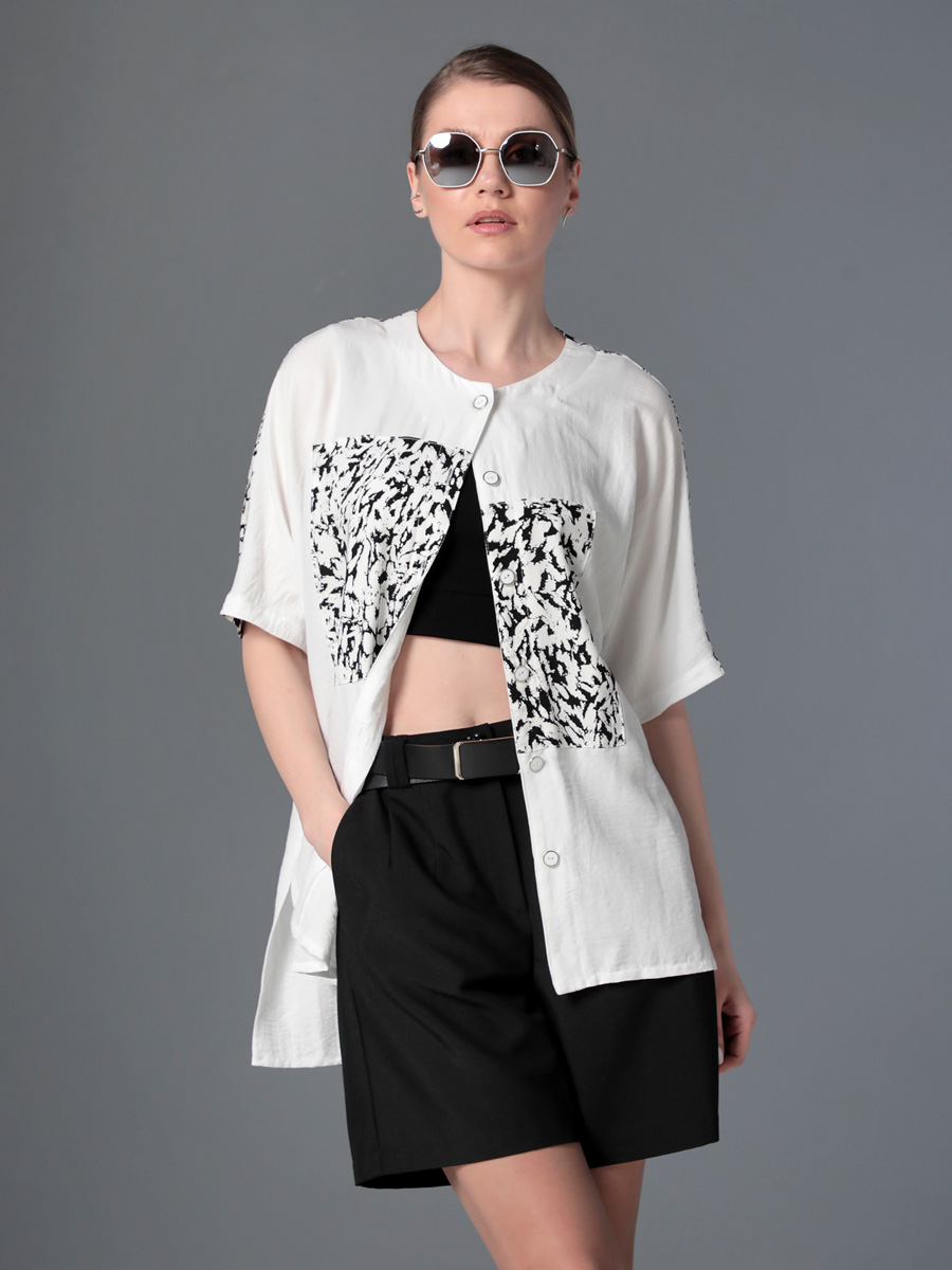 СКИДКА НА КОМПЛЕКТ! При покупке комплекта, скидка 20% на второй товар меньший по стоимости. Легкая летняя блуза-рубашка прямого силуэта "оверсайз" с короткими цельнокроеными рукавами и застежкой на петли и пуговицы подходит для женщин и девушек любого возраста. Эта стильная рубашка с круглым вырезом горловины, разноуровневой линией низа и разрезами по бокам прекрасно дополнит гардероб на весну и лето. Рубашка хорошо сочетается по стилю и цвету со многими изделиями из нашей летней коллекции. Ее можно носить и с юбкой, и с платьем, и с брюками, и с шортами. Выбирайте понравившийся цвет, сочетайте обувь и аксессуары, и эта универсальная блузка выручит Вас в офисе, на прогулке и на вечернем мероприятии.