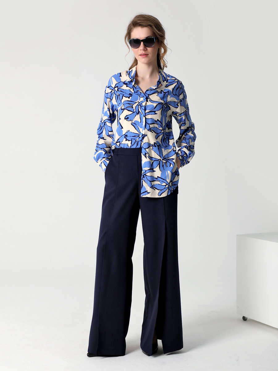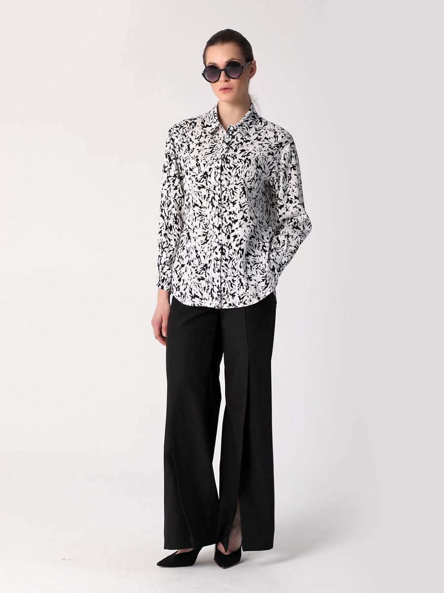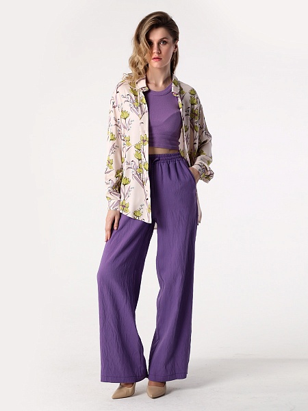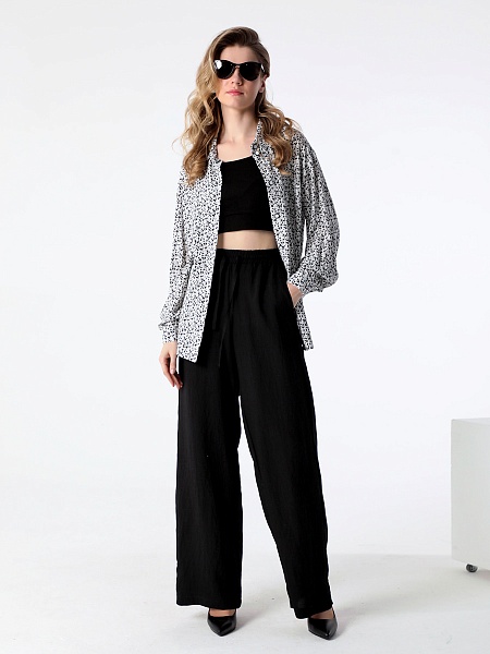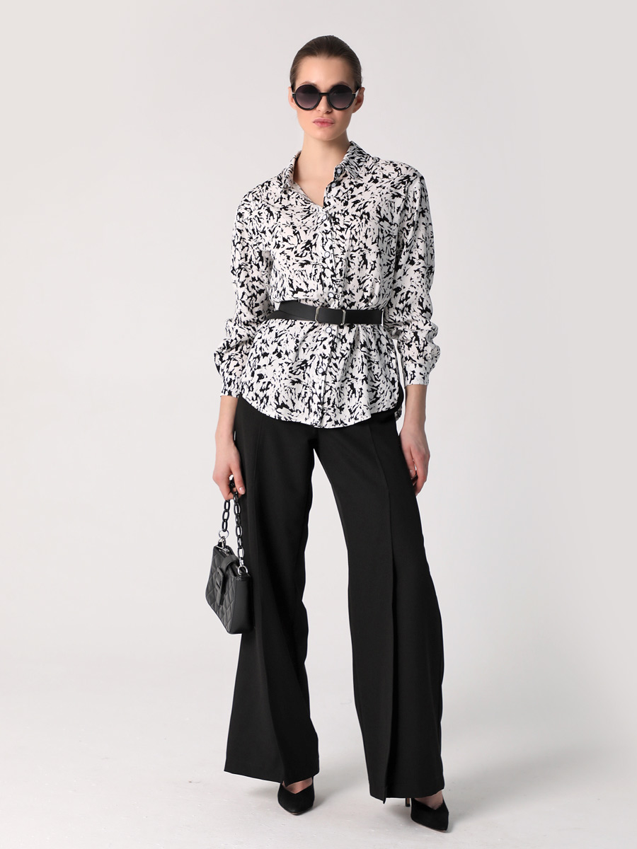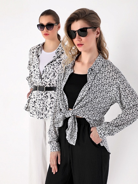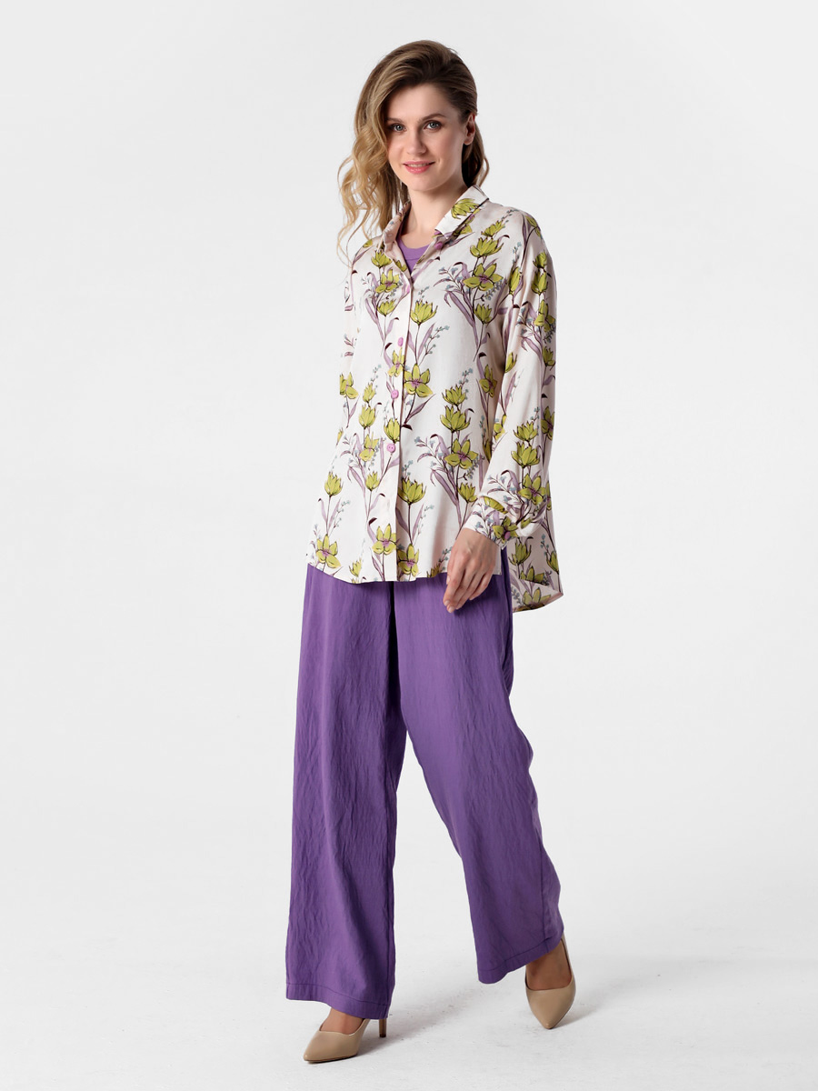СКИДКА НА КОМПЛЕКТ! При покупке комплекта, скидка 20% на второй товар меньший по стоимости. Блузка-рубашка из струящейся вискозы прямого силуэта походит для разных типов фигур. Удлиненная рубашка имеет разноуровневую длину, что придает ей актуальный стильный вид. Длинные рукава оформлены манжетой. Воротник рубашечного типа, на стойке. Застежка - на петли и пуговицы. Эта блузка прекрасно сочетается с любым предметом гардероба, что позволяет создавать как повседневные, так и нарядные образы. В нашей коллекции рубашка хорошо комплектуется с платьем (арт.25201), с брюками (арт.25244), с брюками (арт.25245) и юбкой-брюками (арт.25246). Изготовленная из 100% вискозы, блузка обеспечивает комфорт в течение всего дня. Выбирайте понравившийся цвет, создавайте свои образы, дополняйте их аксессуарами и эта универсальная рубашка станет любимой вещью в Вашем летнем гардеробе!