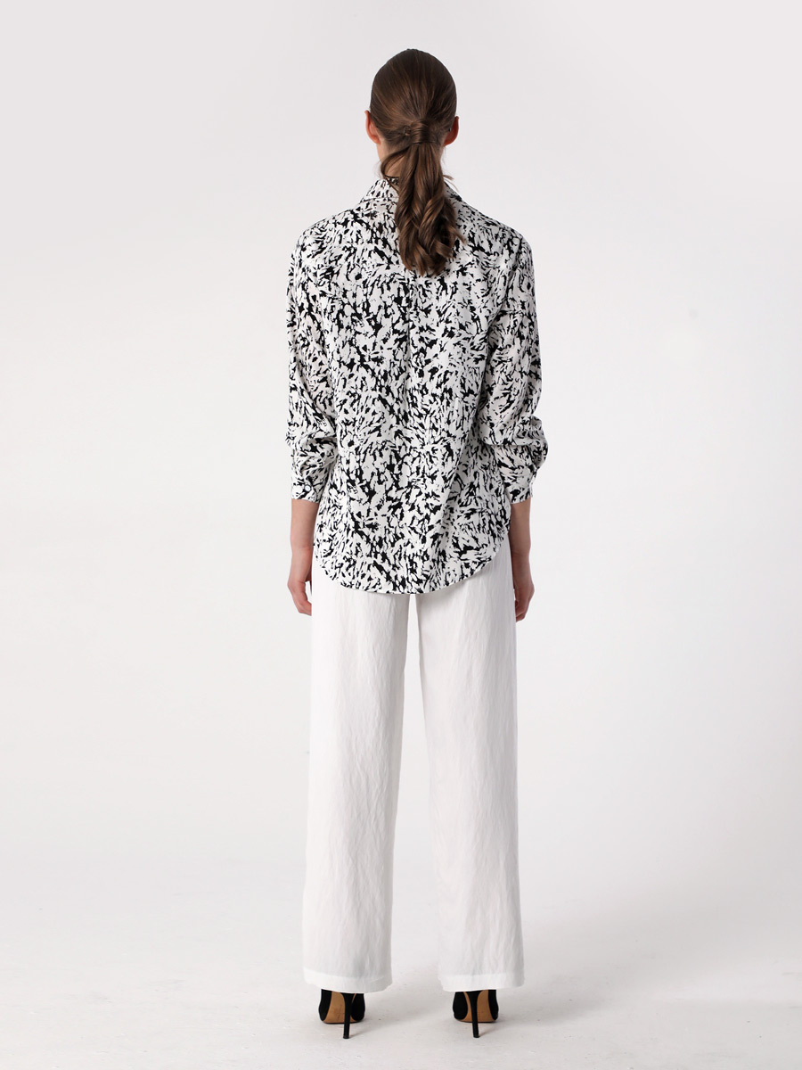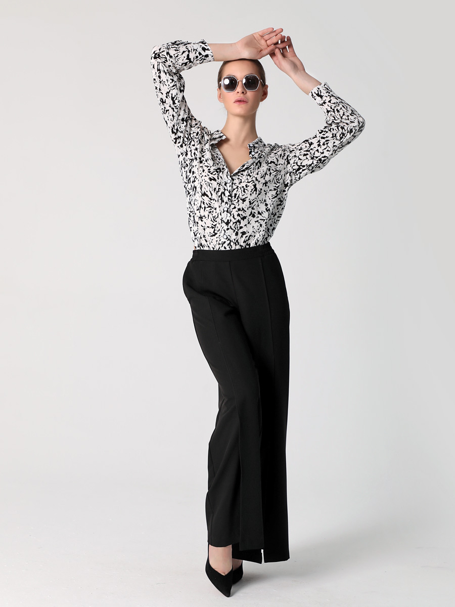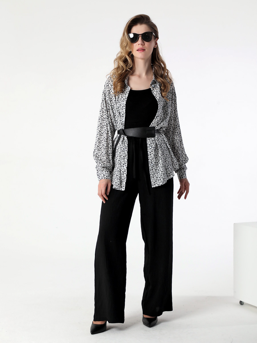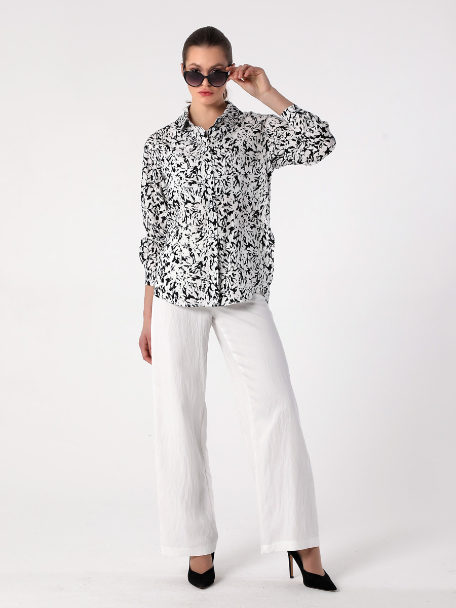 СКИДКА НА КОМПЛЕКТ! При покупке комплекта, скидка 20% на второй товар меньший по стоимости. Блузка-рубашка из струящейся вискозы прямого силуэта походит для разных типов фигур. Удлиненная рубашка имеет разноуровневую длину, что придает ей актуальный стильный вид. Длинные рукава оформлены манжетой. Воротник рубашечного типа, на стойке. Застежка - на петли и пуговицы. Эта блузка прекрасно сочетается с любым предметом гардероба, что позволяет создавать как повседневные, так и нарядные образы. В нашей коллекции рубашка хорошо комплектуется с платьем (арт.25201), с брюками (арт.25244), с брюками (арт.25245) и юбкой-брюками (арт.25246). Изготовленная из 100% вискозы, блузка обеспечивает комфорт в течение всего дня. Выбирайте понравившийся цвет, создавайте свои образы, дополняйте их аксессуарами и эта универсальная рубашка станет любимой вещью в Вашем летнем гардеробе!