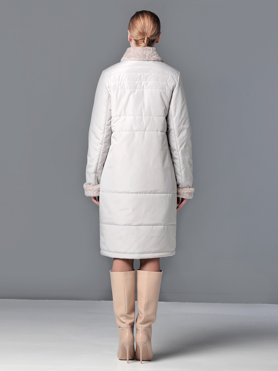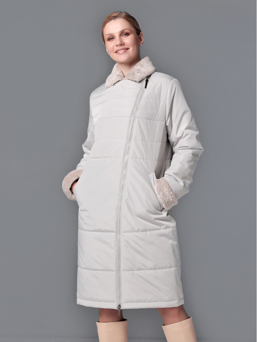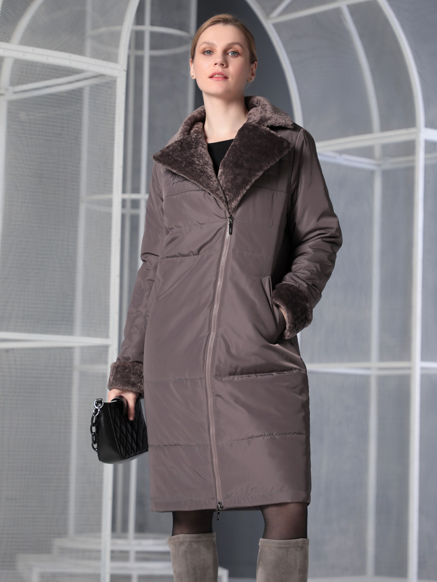 Демисезонное пальто средней длины прямого силуэта подходит для женщин и девушек любого возраста. Ассиметричная застежка на двухзамковую молнию позволяет расстегнуть пальто как сверху, так и снизу, что актуально для корректировки ширины шага и при подъеме по лестнице. Удобно расположенные прорезные карманы застегиваются на кнопку. Низ втачного рукава и воротник "английского" типа с лацканами выполнены из мягкого эко-меха, который хорошо стирается на рекомендованном режиме и не меняет свой внешний вид после высыхания. Плащевая ткань имеет водоотталкивающую пропитку, которая выдержит небольшой осенний дождь или снег. Хорошо зарекомендовавший себя утеплитель "Холлофайбер", плотностью 150 гр/м, защитит от холода и ветра. Подкладка в изделии - в мелкую полоску. Выбирайте понравившийся цвет, добавьте аксессуары и наслаждайтесь стильной и комфортной осенью!
