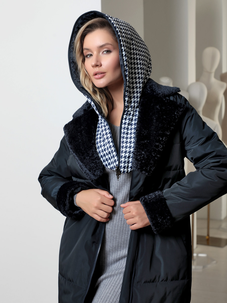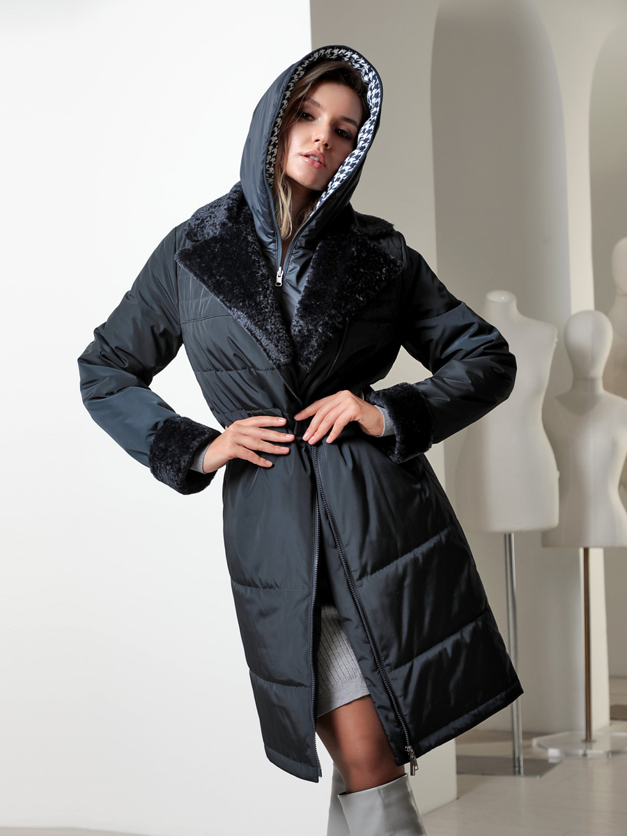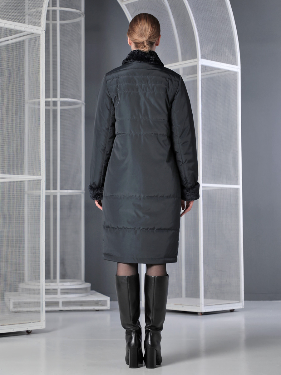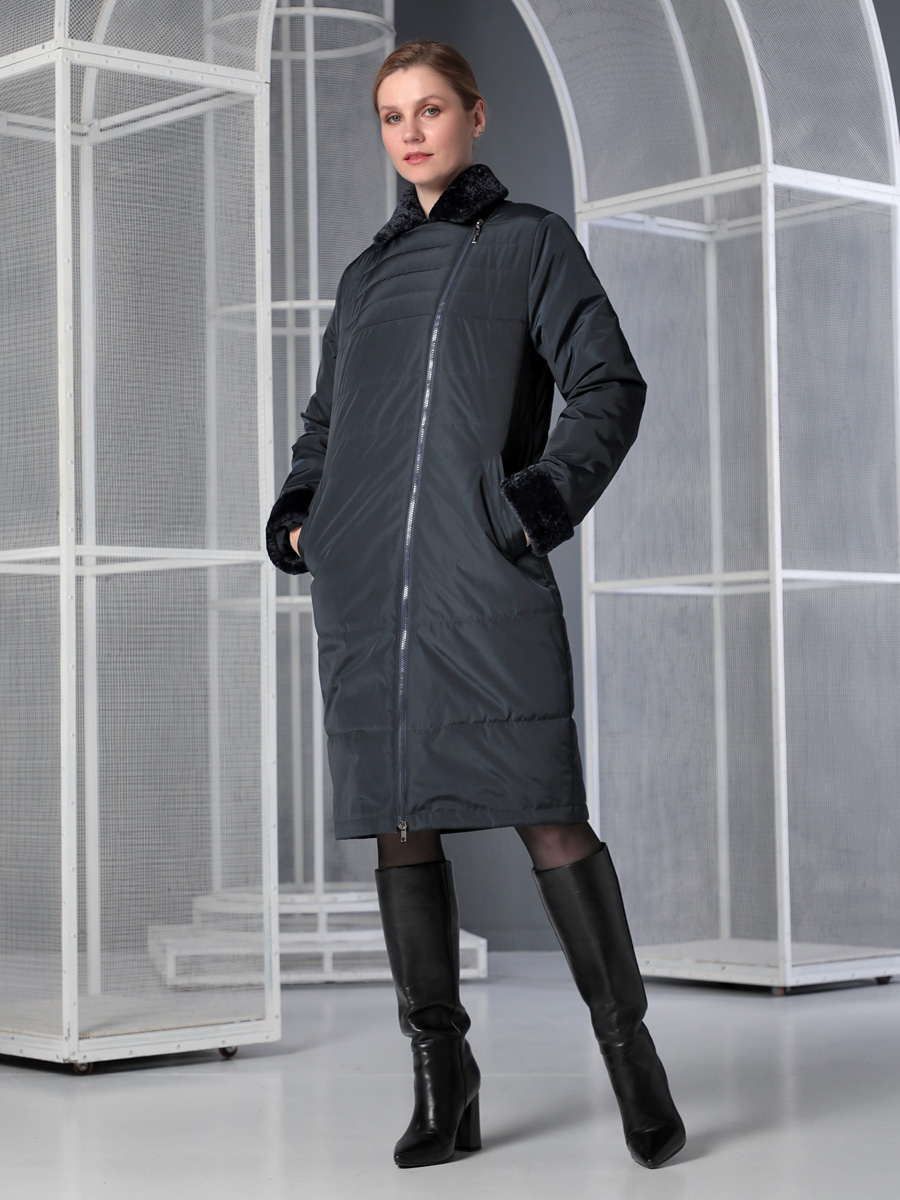 Демисезонное пальто средней длины прямого силуэта подходит для женщин и девушек любого возраста. Ассиметричная застежка на двухзамковую молнию позволяет расстегнуть пальто как сверху, так и снизу, что актуально для корректировки ширины шага и при подъеме по лестнице. Удобно расположенные прорезные карманы застегиваются на кнопку. Низ втачного рукава и воротник "английского" типа с лацканами выполнены из мягкого эко-меха, который хорошо стирается на рекомендованном режиме и не меняет свой внешний вид после высыхания. Плащевая ткань имеет водоотталкивающую пропитку, которая выдержит небольшой осенний дождь или снег. Хорошо зарекомендовавший себя утеплитель "Холлофайбер", плотностью 150 гр/м, защитит от холода и ветра. Подкладка в изделии - в мелкую полоску. Выбирайте понравившийся цвет, добавьте аксессуары и наслаждайтесь стильной и комфортной осенью!