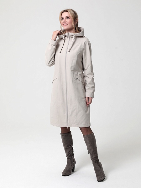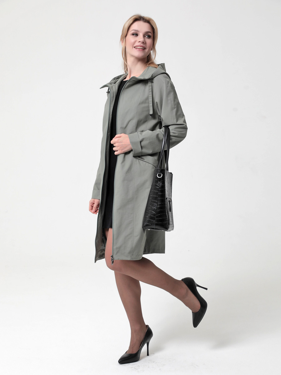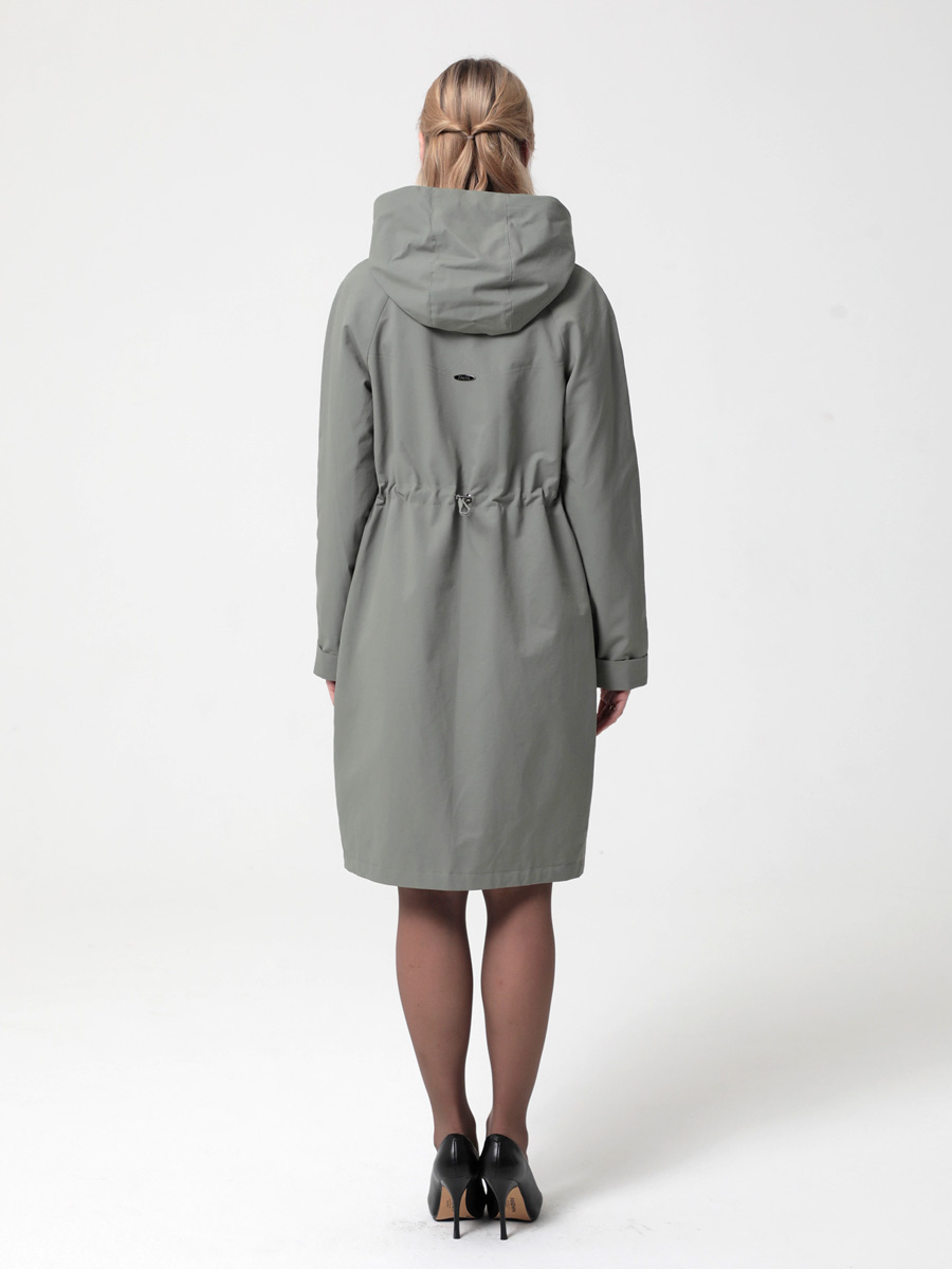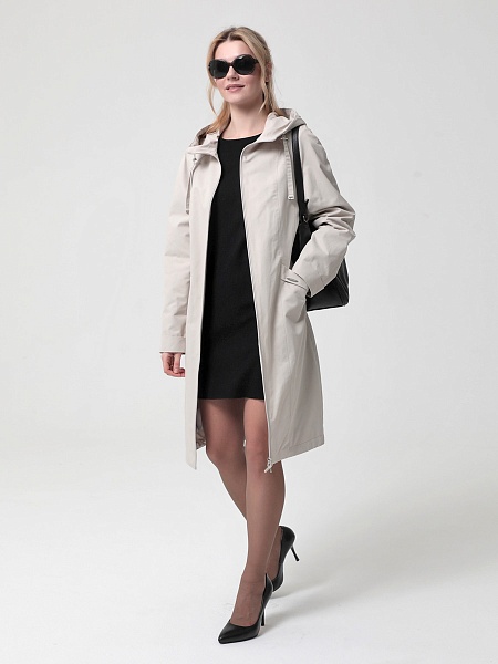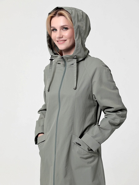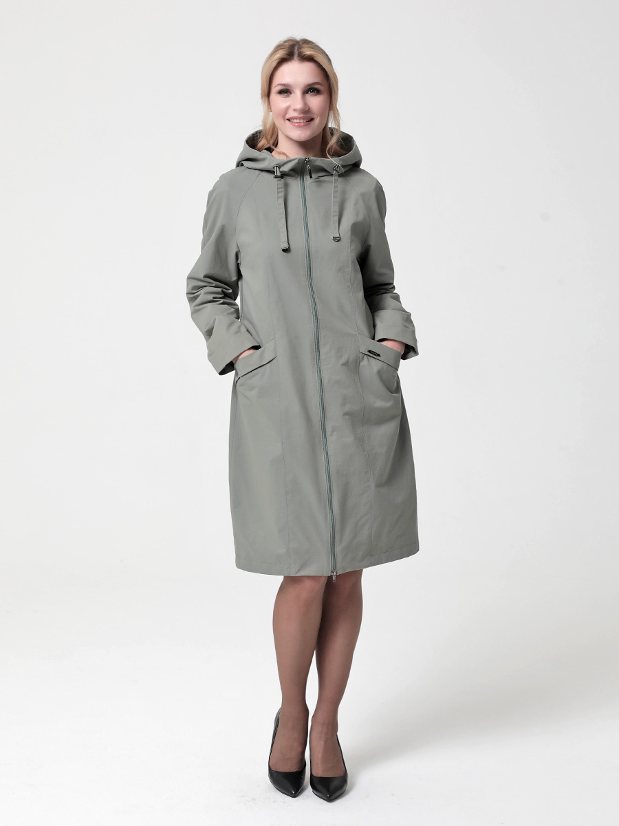 Укороченный плащ  прямого силуэта с рукавами покроя реглан и застежкой на двухзамковую молнию, позволяющую регулировать ширину шага, подходит для девушек и женщин разного возраста. Воротник - стойка, переходящая в капюшон. Вместительные карманы удобно расположены между рельефных швов. Есть внутренний кармашек на молнии.  Силуэт плаща можно менять с помощью затяжек по линии талии (со стороны спинки) и по линии низа. Подкладка в изделии выполнена из ткани в мелкую полоску. Этот весенний плащ из хлопкосодержащей ткани с водоотталкивающей пропиткой хорошо садится на любую фигуру. Добавьте яркости в аксессуарах, и Ваша весна будет комфортной и стильной!