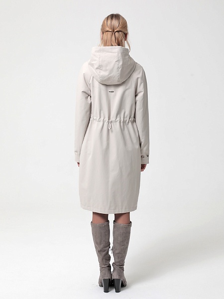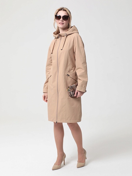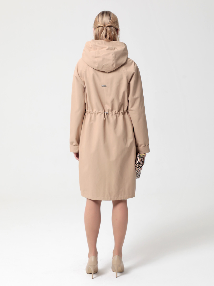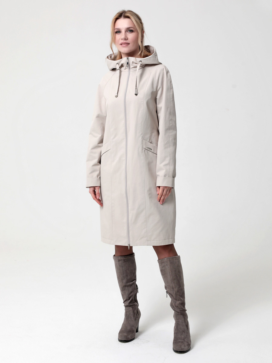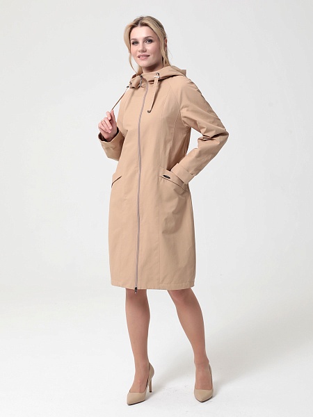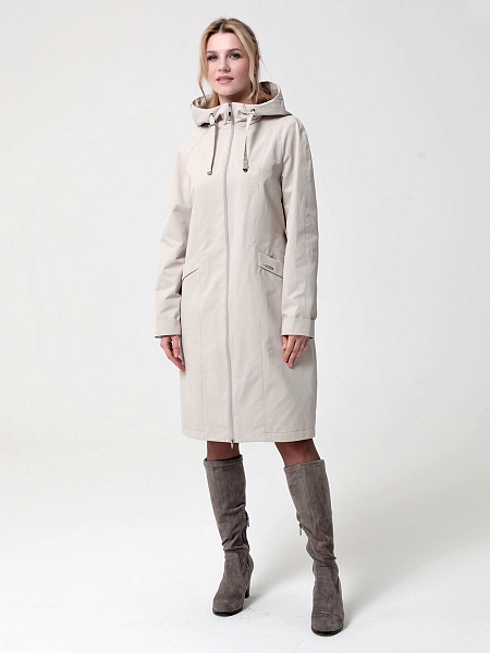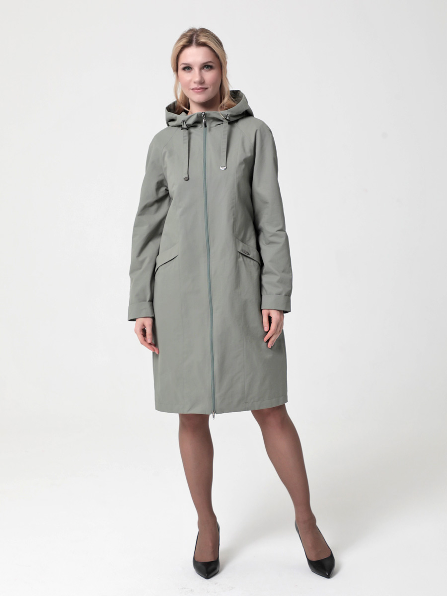 Укороченный плащ  прямого силуэта с рукавами покроя реглан и застежкой на двухзамковую молнию, позволяющую регулировать ширину шага, подходит для девушек и женщин разного возраста. Воротник - стойка, переходящая в капюшон. Вместительные карманы удобно расположены между рельефных швов. Есть внутренний кармашек на молнии.  Силуэт плаща можно менять с помощью затяжек по линии талии (со стороны спинки) и по линии низа. Подкладка в изделии выполнена из ткани в мелкую полоску. Этот весенний плащ из хлопкосодержащей ткани с водоотталкивающей пропиткой хорошо садится на любую фигуру. Добавьте яркости в аксессуарах, и Ваша весна будет комфортной и стильной!