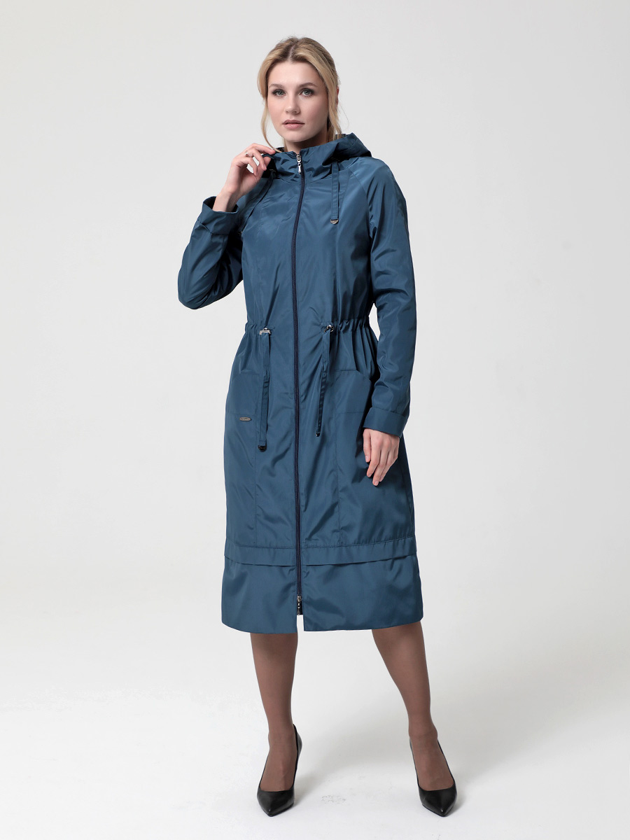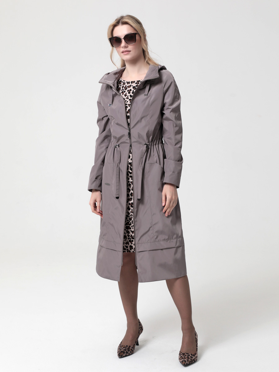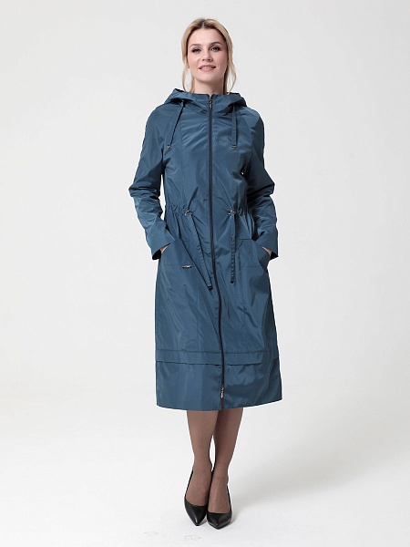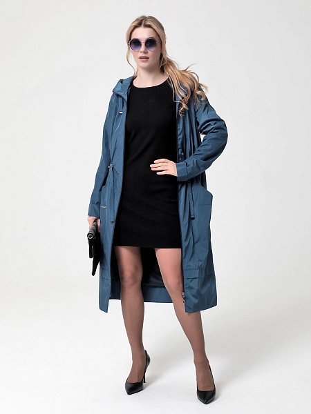 Длинный плащ прямого силуэта с рукавами покроя реглан и застежкой на двухзамковую молнию. Воротник - стойка, переходящая в капюшон. Многочисленные кулиски, большие карманы и легкая резинка по низу рукава - все эти детали подчеркивают спортивный стиль, актуальный в этом сезоне.
