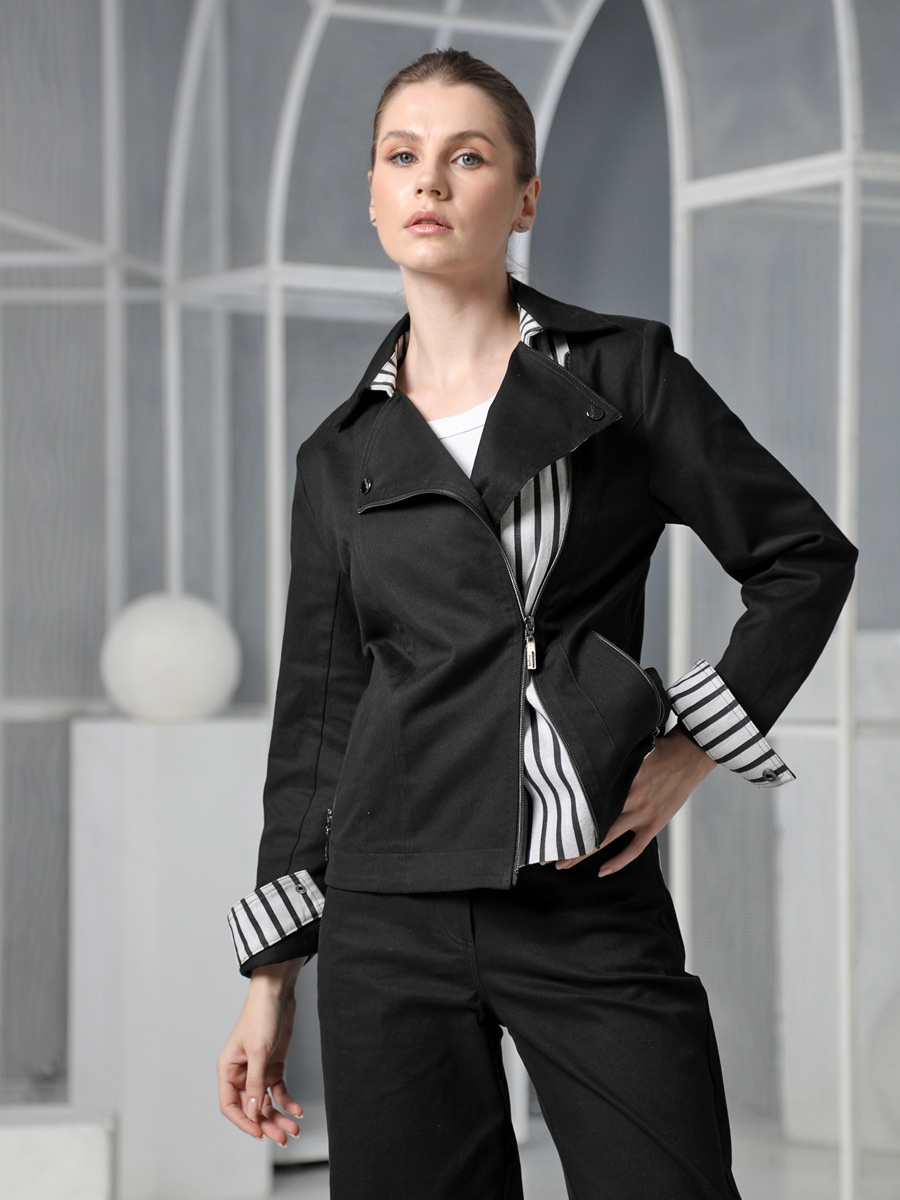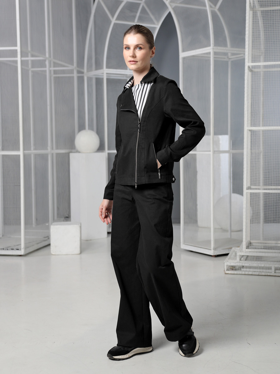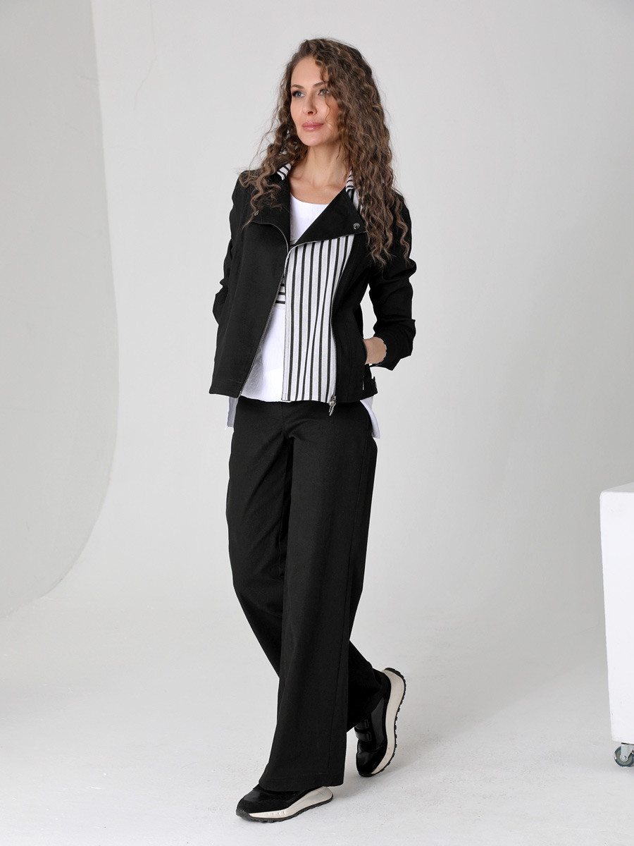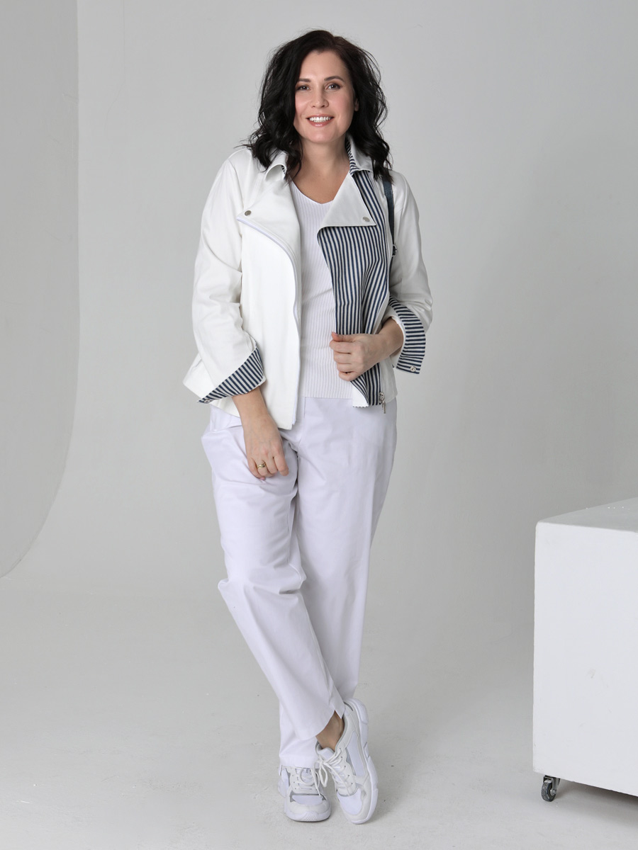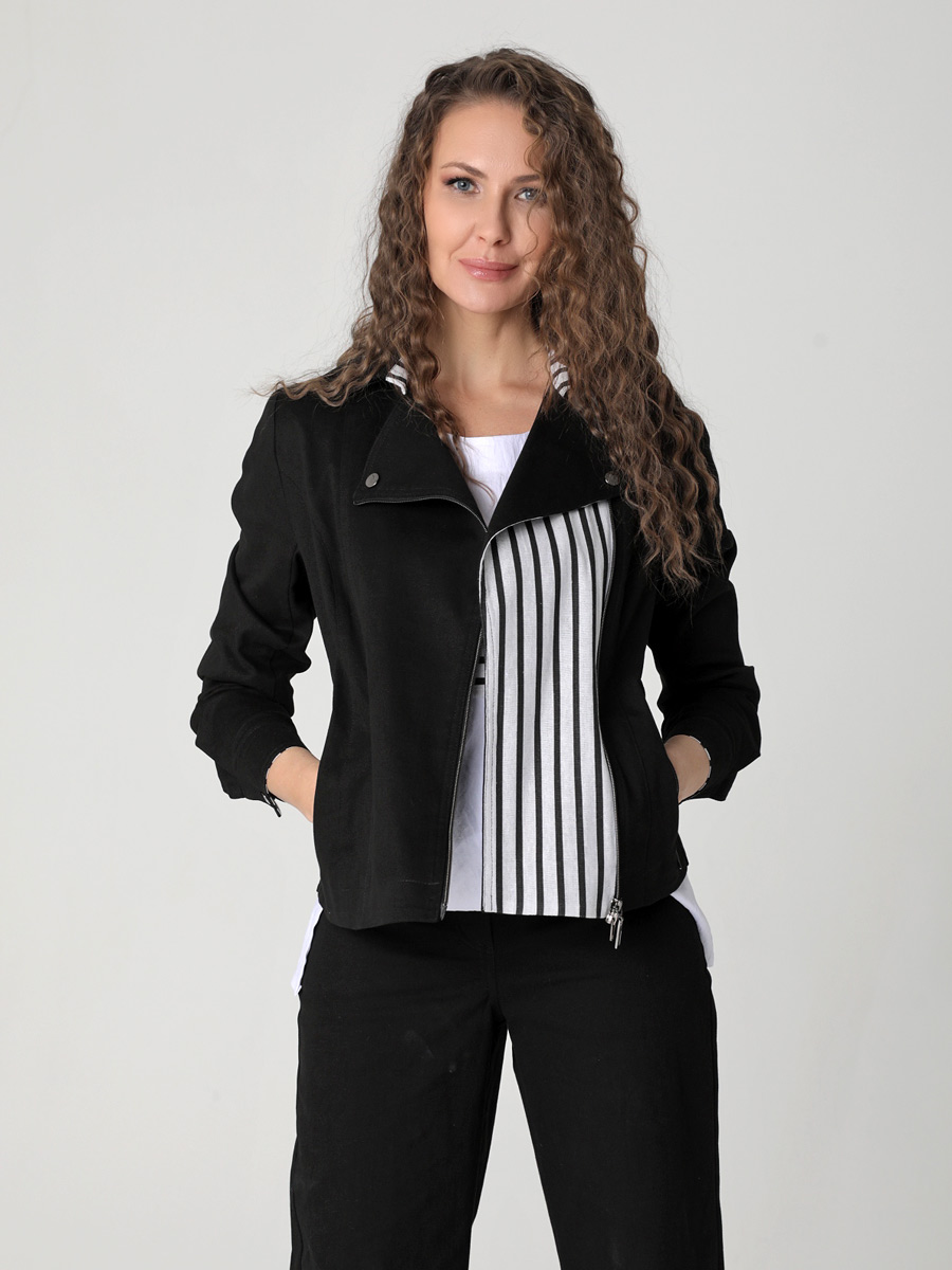 СКИДКА НА КОМПЛЕКТ! При покупке комплекта, скидка 20% на второй товар меньший по стоимости. Женский жакет-косуха - стильная одежда, которая дополнит Ваш гардероб. Летний безподкладочный жакет застегивается на молнию. Низ втачного рукава оформлен манжетой на кнопке. Воротник классический для такого покроя - отложной с лацканами. Есть удобные карманы с молнией. Прямой силуэт подойдет для женщин и девушек с любым типом фигуры. Женский стильный пиджак на весну, лето и осень выполнен из плотного хлопка с льняными вставками. Ткань под джинсу износостойкая и приятная на ощупь. Она хорошо дышит. Такой жакет можно носить в офис или на прогулку. Косуха хорошо комплектуется с платьем, юбкой, брюками или джинсами. В нашей летней коллекции можно подобрать компаньоны к этой легкой куртке: блуза (арт.25232), узкие брюки (арт. 25240) и широкие из такого же хлопка (арт.25242). Фантазируйте с аксессуарами и обувью, и Ваше лето будет стильным и комфортным!