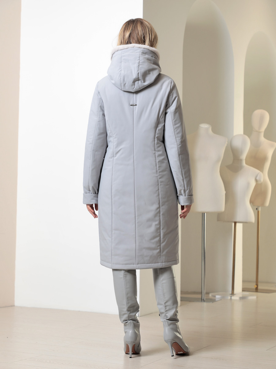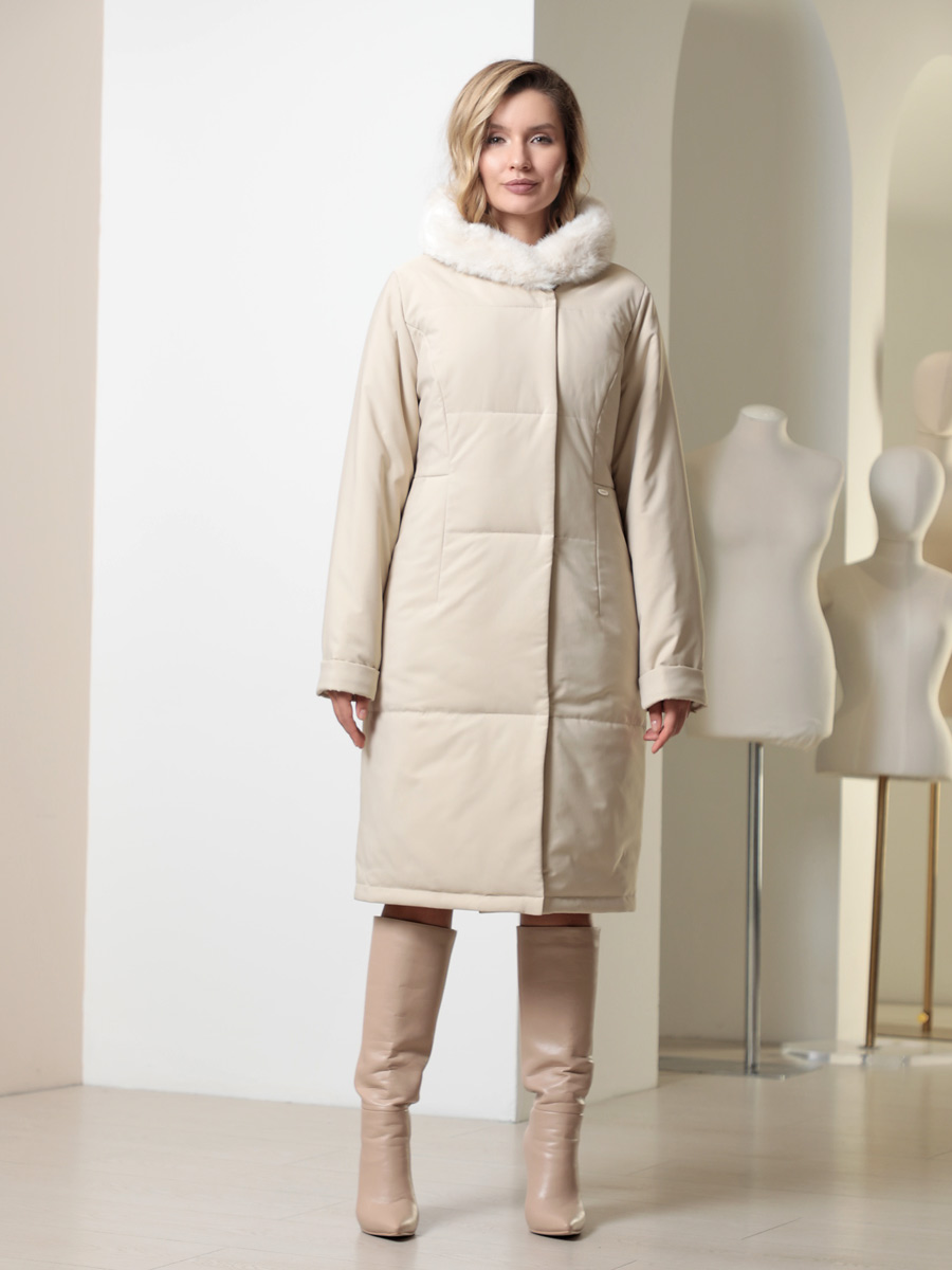 Стильное зимнее пальто средней длины полуприлегающего силуэта подходит для девушек и женщин разной возрастной категории, оно хорошо садится на любую фигуру. Отворот несъемного капюшона оформлен опушкой из приятного на ощупь искусственного меха, что добавляет элегантности образу. Мех не отстегивается, но хорошо стирается и не теряет свой красивый внешний вид после высыхания. Смещенная застежка в пальто двойная - на молнию и кнопки. Длину втачного рукава можно регулировать отворотом. Карманы в этой женственной модели пальто выполнены по типу накладных и предназначены для "мелочей". Есть внутренний кармашек на молнии. Плащевая ткань имеет водоотталкивающую пропитку, выдерживающую небольшой дождь, снег и ветер. Хорошо зарекомендовавший себя утеплитель " Холлофайбер", плотностью 300гр/м, защитит от холода. Подкладка в изделии - из ткани в мелкую полоску. Выбирайте понравившийся цвет, подбирайте аксессуары, и Ваша зима будет уютной, стильной и комфортной!