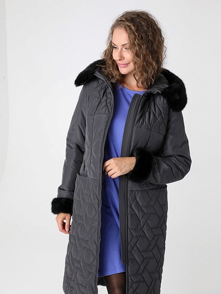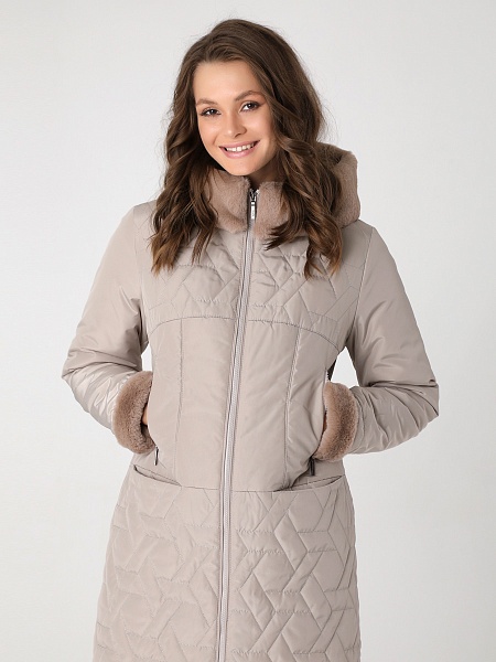 Элегантное зимнее пальто полуприлегающего силуэта средней длины подходит для девушек и женщин разной возрастной категории. Застежка - на двухзамковую тесьму молнию с внутренней ветрозащитной планкой. Отворот втачного рукава и отворот несъемного капюшона выполнены из шелковистого искусственного меха "под кролика"; опушка не отстегивается, но очень хорошо стирается и сохраняет свой красивый внешний вид! Две пары удобных карманов: верхние расположены в рельефных швах и застегиваются на молнию, нижние - в подрезе. В подкладке изделия имеется нагрудный потайной карман на молнии. Плащевая ткань, из которой выполнено изделие, имеет водоотталкивающую пропитку, выдерживающую небольшой дождь, снег и ветер. Хорошо зарекомендовавший себя утеплитель " Холлофайбер", плотностью 300гр/м, защитит от холода. Подкладка в изделии выполнена из ткани в мелкую полоску.