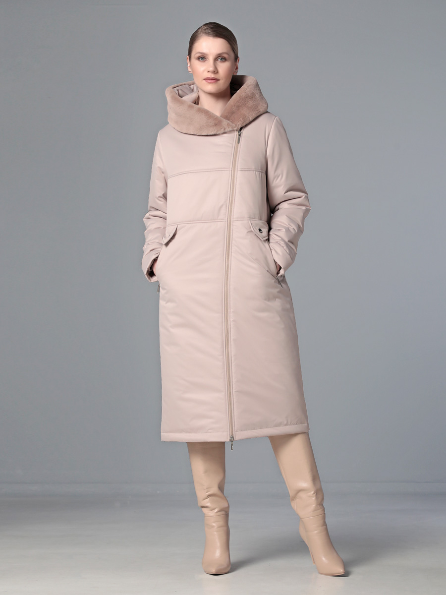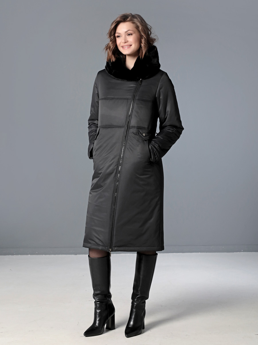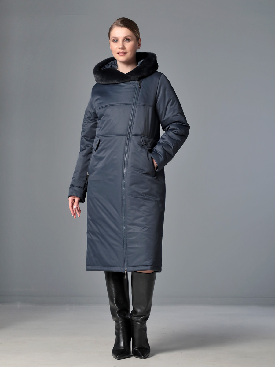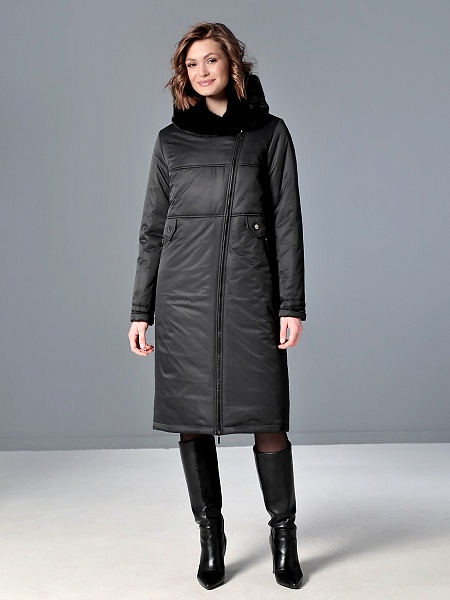 Стильное зимнее пальто средней длины с ассиметричной застежкой на двухзамковую молнию, которая расстегиванием снизу, позволяет регулировать ширину шага при подъеме и ходьбе. Прямой силуэт можно скорректировать затяжкой на талии, увеличив тем самым прилегание по спинке. Капюшон оформлен меховой опушкой, не отстегивается. Модный искусственный мех хорошо стирается и не меняет свой красивый внешний вид после высыхания. Длину втачного рукава можно регулировать отворотом. Комфортности добавляют удобно расположенные карманы с молнией. Есть внутренний кармашек, тоже на молнии. Модель этого пальто рекомендована женщинам и девушкам любой возрастной категории. Оно универсально - его можно сочетать как с платьями и юбками, так и с джинсами и брюками. Плащевая ткань имеет водоотталкивающую пропитку, которая выдержит небольшой дождь или снег. Хорошо зарекомендовавший себя современный утеплитель Холлофайбер, плотностью 300 г/м, защитит от холода и ветра. Подкладка в изделии - в мелкую полоску.