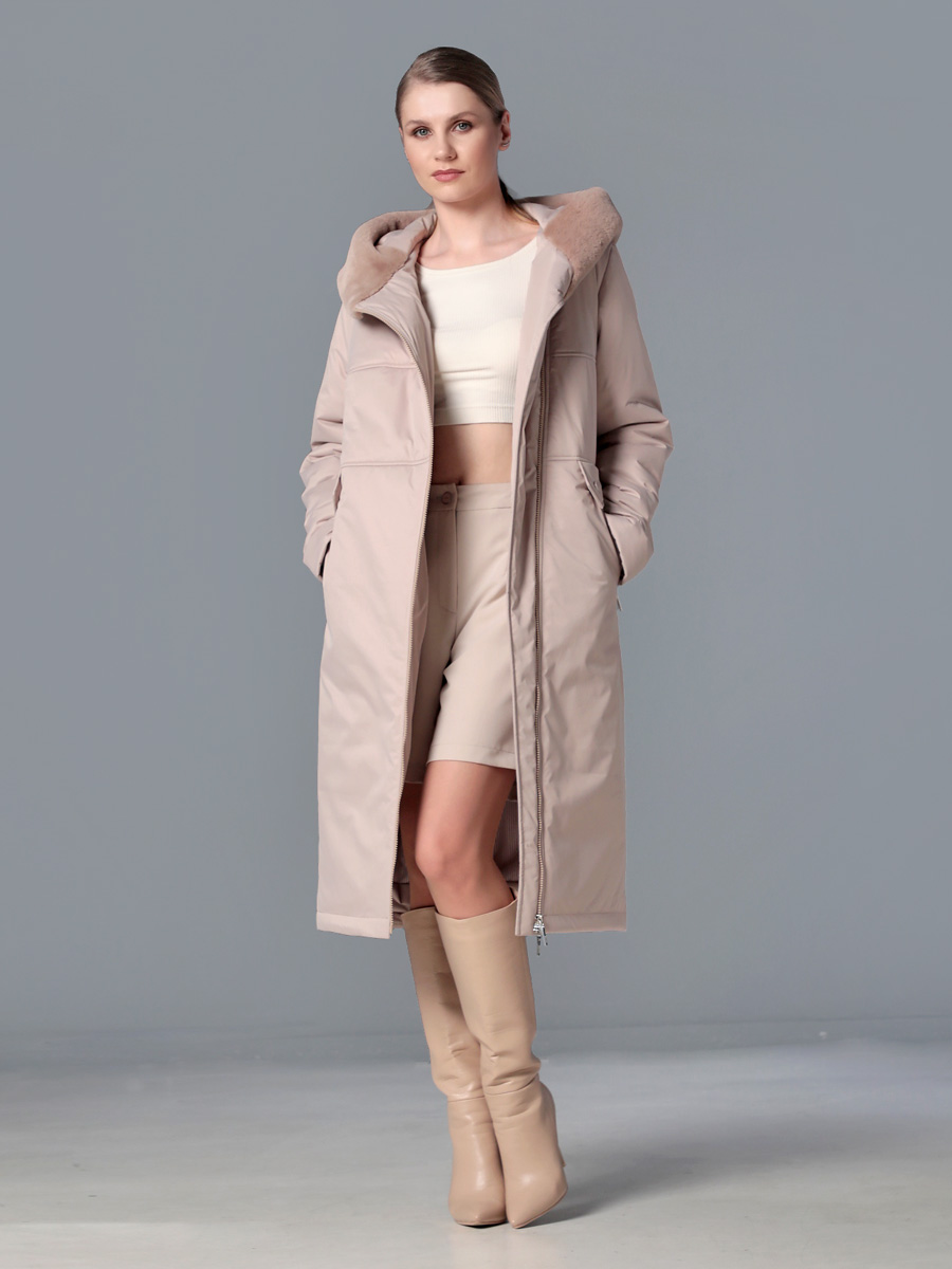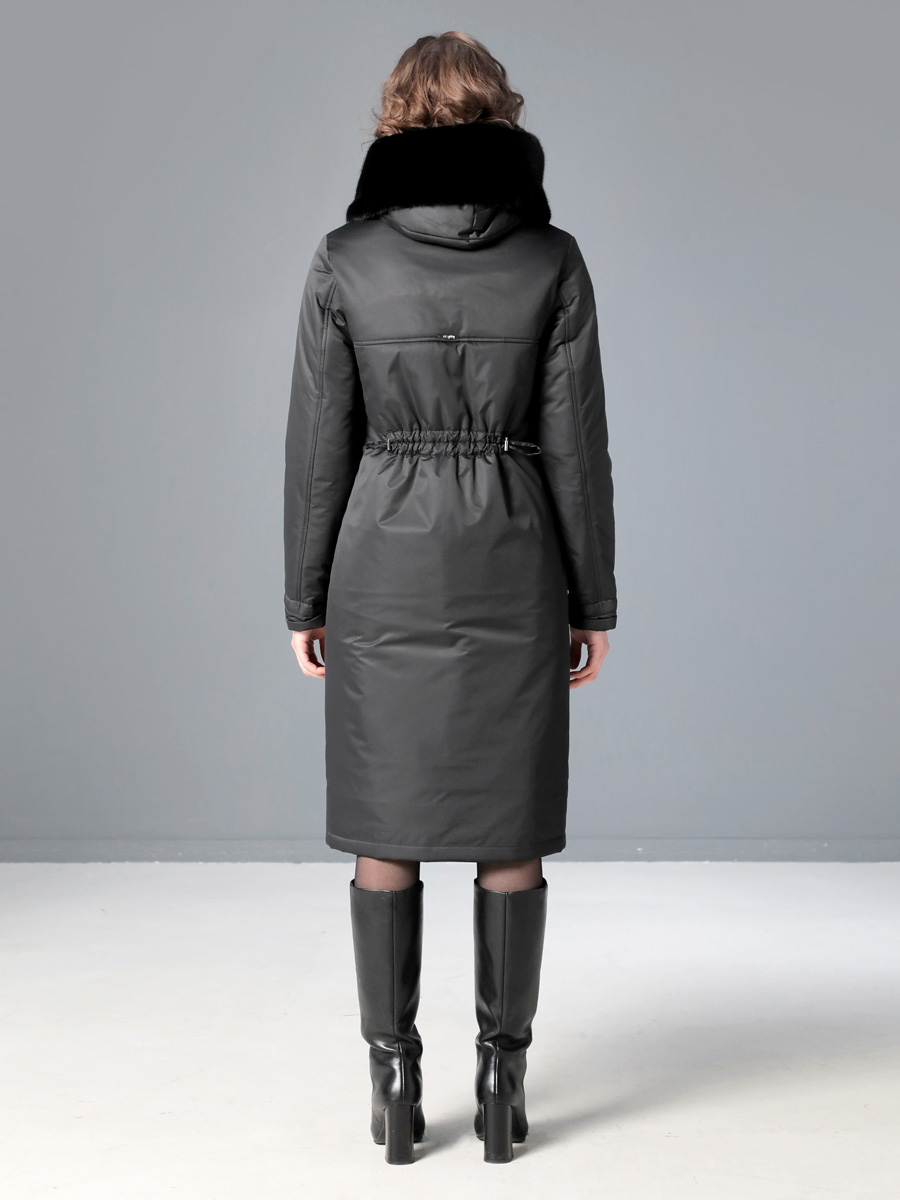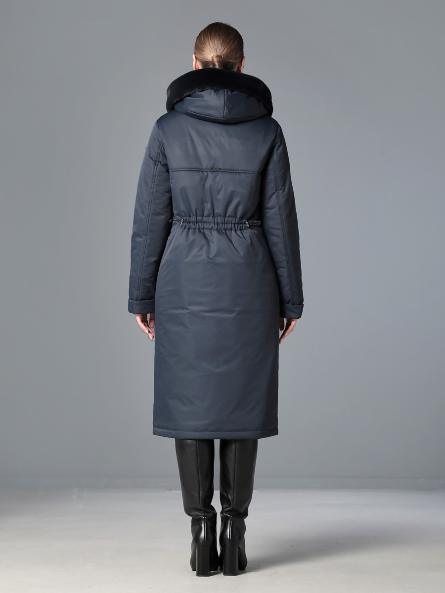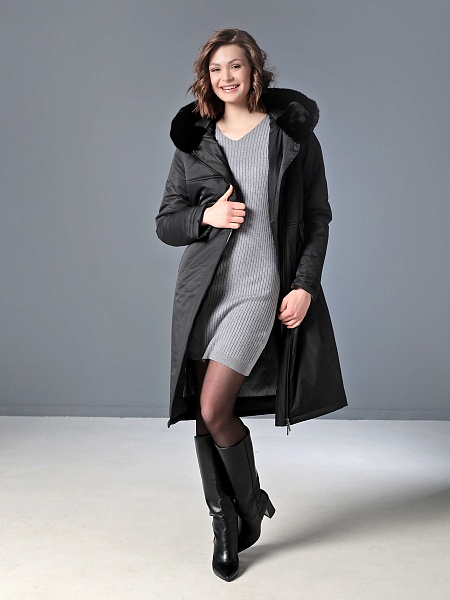 Стильное зимнее пальто средней длины с ассиметричной застежкой на двухзамковую молнию, которая расстегиванием снизу, позволяет регулировать ширину шага при подъеме и ходьбе. Прямой силуэт можно скорректировать затяжкой на талии, увеличив тем самым прилегание по спинке. Капюшон оформлен меховой опушкой, не отстегивается. Модный искусственный мех хорошо стирается и не меняет свой красивый внешний вид после высыхания. Длину втачного рукава можно регулировать отворотом. Комфортности добавляют удобно расположенные карманы с молнией. Есть внутренний кармашек, тоже на молнии. Модель этого пальто рекомендована женщинам и девушкам любой возрастной категории. Оно универсально - его можно сочетать как с платьями и юбками, так и с джинсами и брюками. Плащевая ткань имеет водоотталкивающую пропитку, которая выдержит небольшой дождь или снег. Хорошо зарекомендовавший себя современный утеплитель Холлофайбер, плотностью 300 г/м, защитит от холода и ветра. Подкладка в изделии - в мелкую полоску.