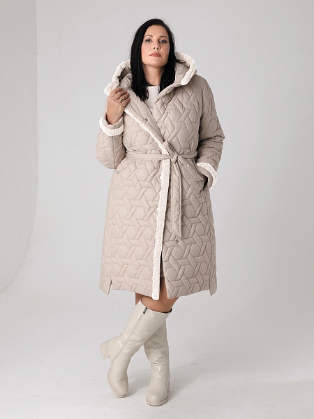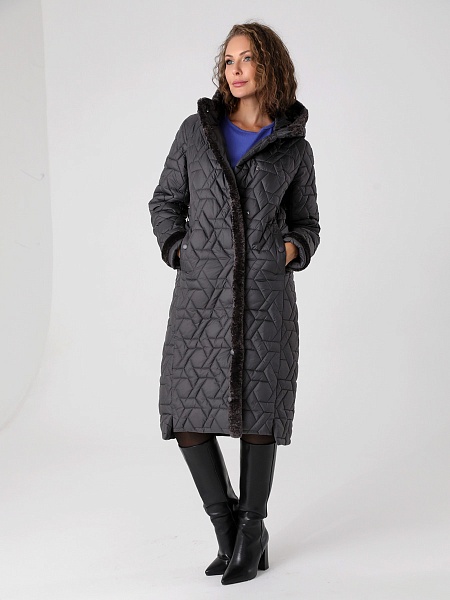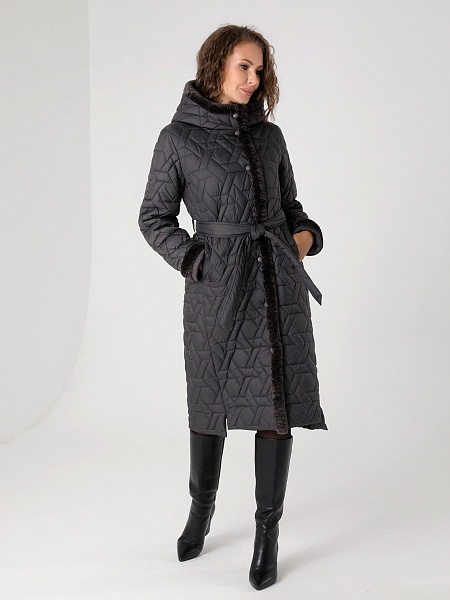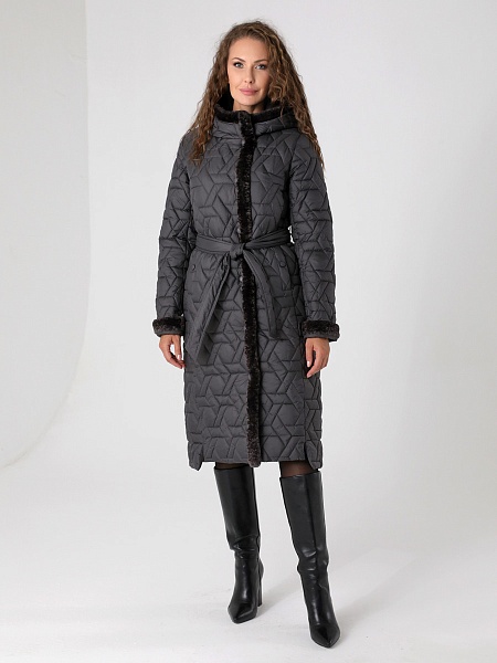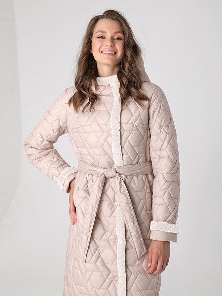 Стильное зимнее пальто прямого силуэта с модными акцентами в виде разноуровневой линии низа, актуальной стежки и отделки из искусственного меха украсит гардероб девушек и женщин разных возрастных категорий. Прямой силуэт этого стеганого пальто средней длины можно скорректировать с помощью съемного завязывающегося пояса. Длину втачных рукавов можно регулировать отворотом. Застежка - на кнопки. Несъемный капюшон в застегнутом виде образует красивую стойку. Карманы, расположенные в рельефных швах, застегиваются на кнопки. Есть внутренний кармашек на молнии. Выбирайте понравившийся цвет и Вы, однозначно, будете стильной в этом стеганом пальто с актуальной меховой отделкой! Опушка не отстегивается, но хорошо стирается и не меняет свой красивый внешний вид после высыхания. Плащевая ткань имеет водоотталкивающую пропитку, которая выдержит небольшой дождь или снег. Хорошо зарекомендовавший себя утеплитель " Холлофайбер", плотностью 300 г/м, защитит от холода и ветра. Подкладка в изделии выполнена из ткани в мелкую по