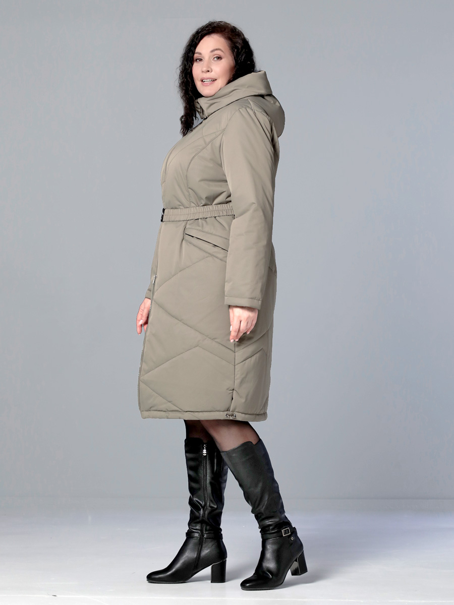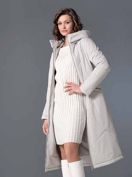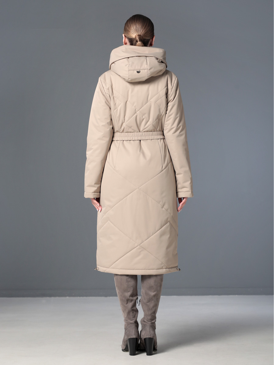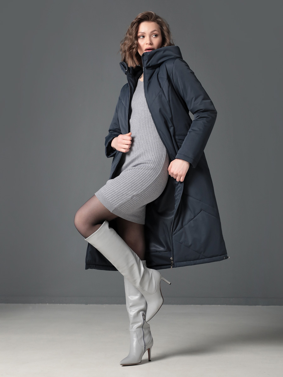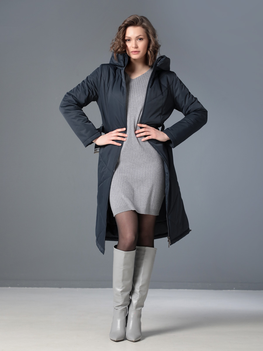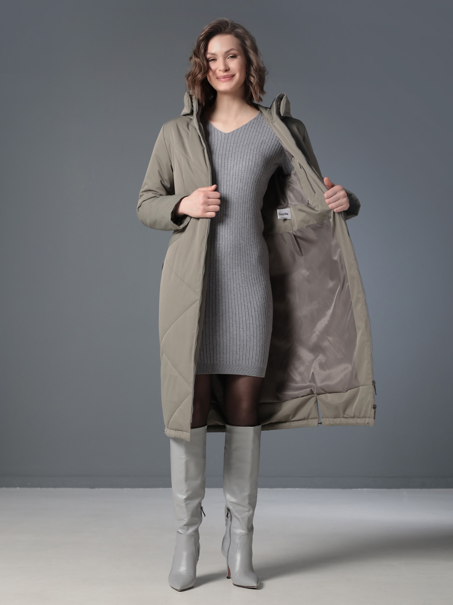 Длинное демисезонное пальто полуприлегающего силуэта с втачными рукавами и разрезами по бокам. Застежка на двухзамковую молнию позволяет расстегнуть пальто как сверху, так и снизу, что актуально при такой длине изделия для корректировки ширины шага и при подъеме по лестнице. Воротник - стойка, переходящая в капюшон. Прорезные карманы с декоративными лИсточками удобно расположены в рельефных швах. При желании линию талии можно акцентировать съемным эластичным поясом на защелке. Плащевая ткань имеет водоотталкивающую пропитку, которая выдержит небольшой осенний дождь или снег. Хорошо зарекомендовавший себя утеплитель Холлофайбер, плотностью 150 гр/м, защитит от холода и ветра. Подкладка в изделии выполнена из качественной ткани точно в цвет верха. Фантазируйте с аксессуарами, и Ваша осень будет стильной и комфортной!