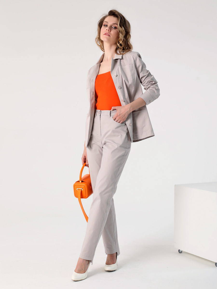 СКИДКА НА КОМПЛЕКТ! При покупке комплекта, скидка 20% на второй товар меньший по стоимости. Жакет полуприлегающего силуэта БЕЗ ПОДКЛАДКИ подходит для девушек и женщин любого возраста. Застежка - на петли и пуговицы. Воротник жакетного типа с лацканами. Накладные карманы гармонично дополняют стиль жакета-рубашки. Женский легкий пиджак на весну, лето и осень выполнен из плотного хлопка. Ткань хорошо "дышит". Такой жакет можно удачно сочетать с брюками (арт. 25240), выполненными из такого же хлопка. В весенний, летний и осенний сезон такой жакет можно носить в офис, на прогулку, на вечерние встречи с друзьями. Фантазируйте с яркими акцентами в виде аксессуаров, и Ваше лето будет стильным и комфортным!
