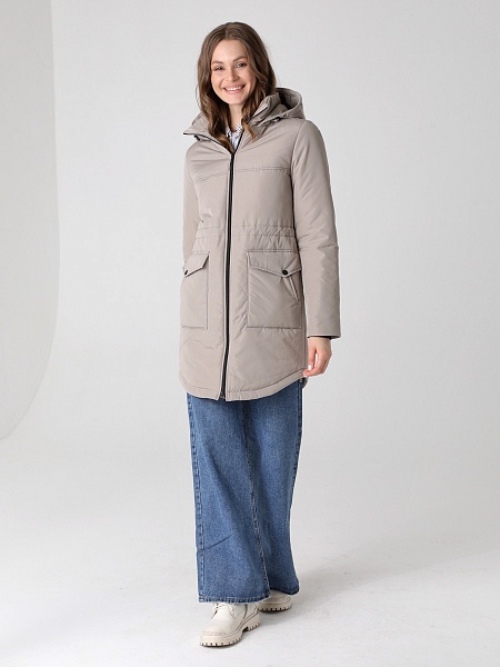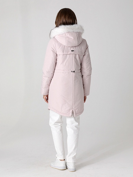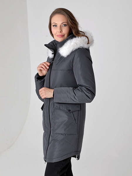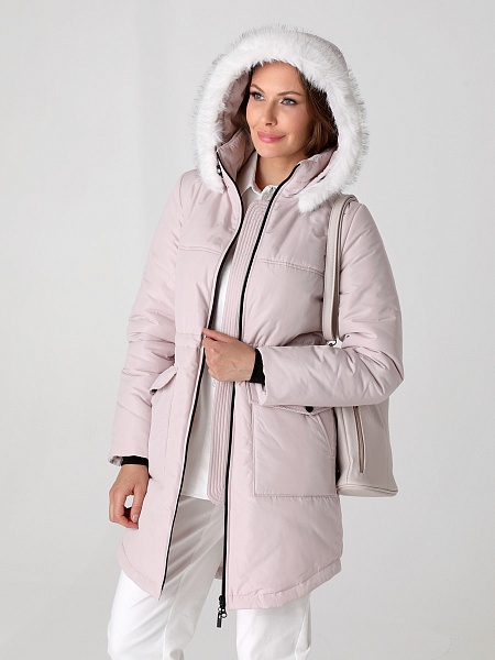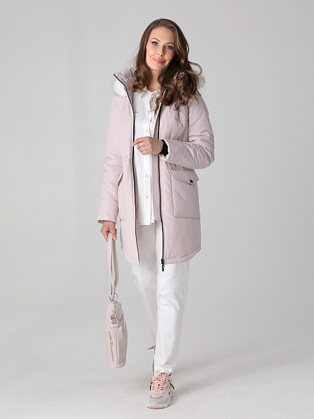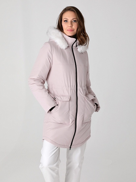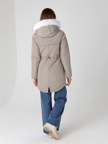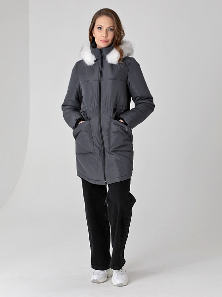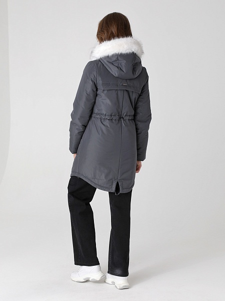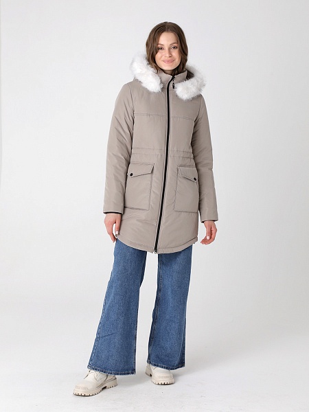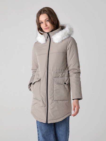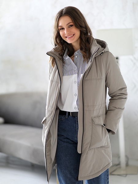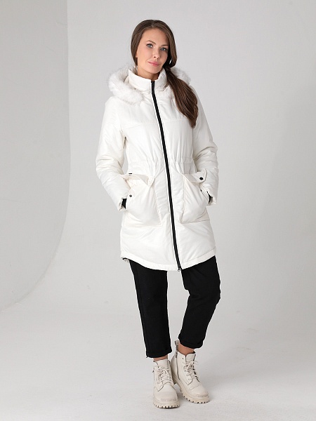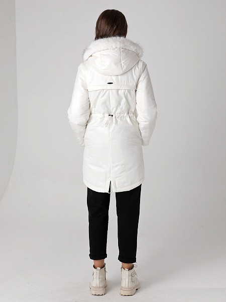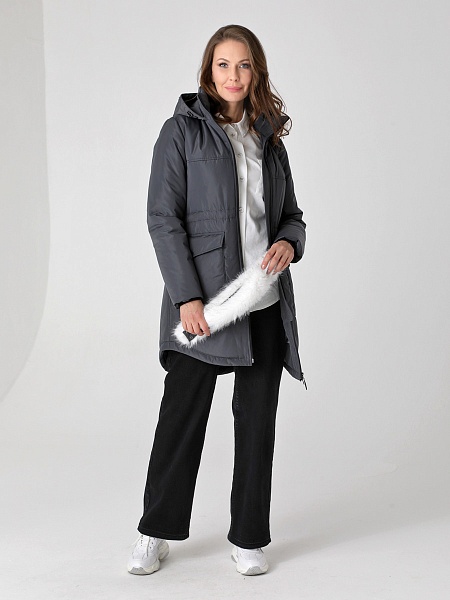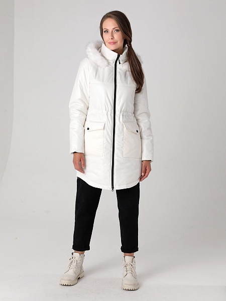 Модная куртка-парка прямого силуэта с фигурной линией низа и застежкой на двухзамковую молнию, которая позволяет расстегнуть куртку как сверху, так и снизу, регулируя тем самым удобство посадки. Воротник - уютная стойка. Отстегивающийся капюшон фиксируется кнопками. Низ втачного рукава оформлен трикотажной манжетой. Накладные карманы имеют два функциональных входа. Есть внутренний кармашек на молнии. Прямой силуэт парки можно скорректировать затяжкой, подчеркнув линию талии. Такая демисезонная куртка подойдет девушкам и женщинам любого возраста. Контрастная фурнитура делает образ ярче, а белая отстегивающаяся опушка освежает лицо. Нежный искусственный мех хорошо выдерживает обычную стирку и не меняет внешний вид после высыхания. Плащевая ткань имеет водоотталкивающую пропитку, которая выдержит небольшой осенний дождь или снег. Хорошо зарекомендовавший себя холлофайбер, плотностью 150 г/м, защитит от холода и ветра. Подкладка в изделии - в мелкую полоску.