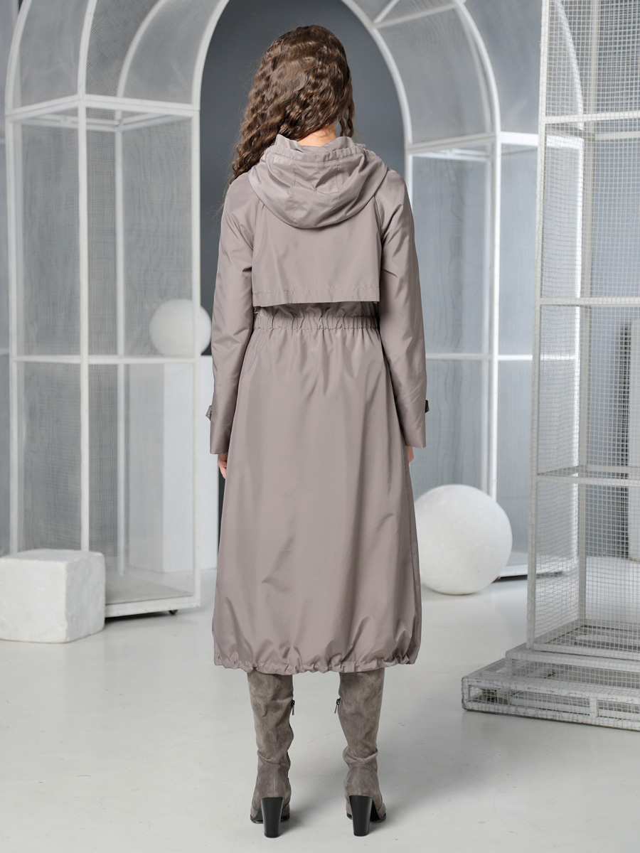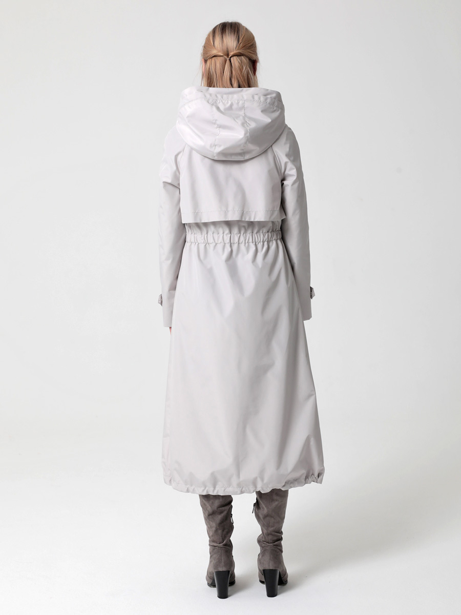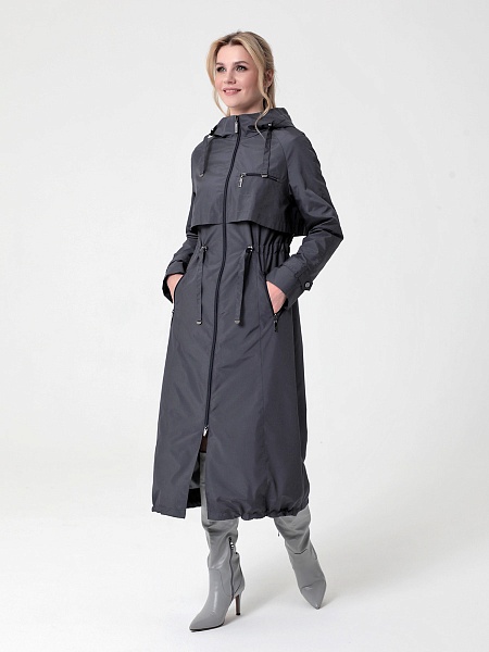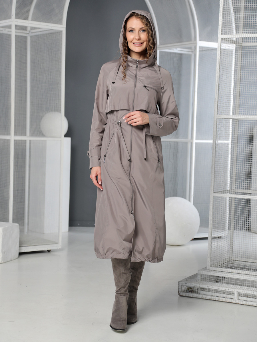 Длинный весенний плащ А-образного силуэта с рукавами покроя реглан и отлетными кокетками по спинке и полочке подойдет для женщин и девушек любого возраста. Застежка на двухзамковую молнию позволяет расстегнуть изделие как сверху, так и снизу, регулируя тем самым ширину шага при ходьбе и подъеме. Воротник - стойка, переходящая в регулируемый капюшон. Внешние карманы застегиваются на молнию. Есть внутренний кармашек, тоже на молнии. Прилегание по талии обеспечивается с помощью эластичной ленты и кулиски. Ширину по низу изделия можно регулировать затяжкой, тем самым меняя силуэт. Плащевая ткань имеет водоотталкивающую пропитку, которая выдержит небольшой дождь и легкий ветер. Плащ выполнен в модных цветах, выбирайте понравившийся, фантазируйте с обувью и аксессуарами, и Ваша весна будет не только комфортной, но и стильной!