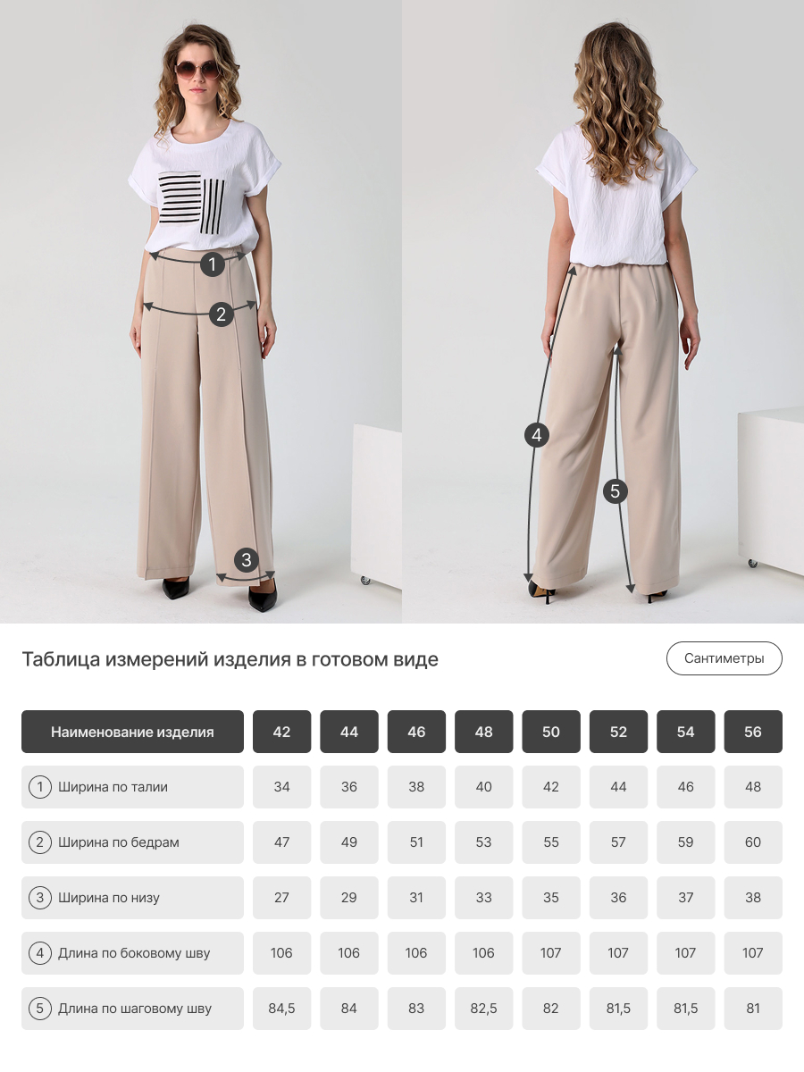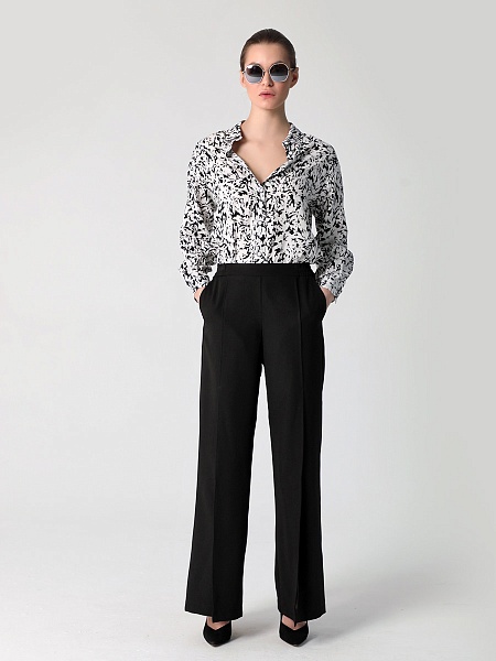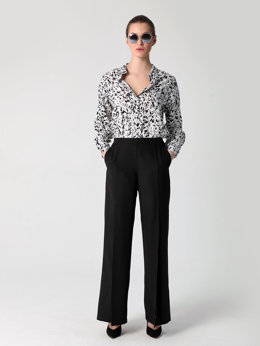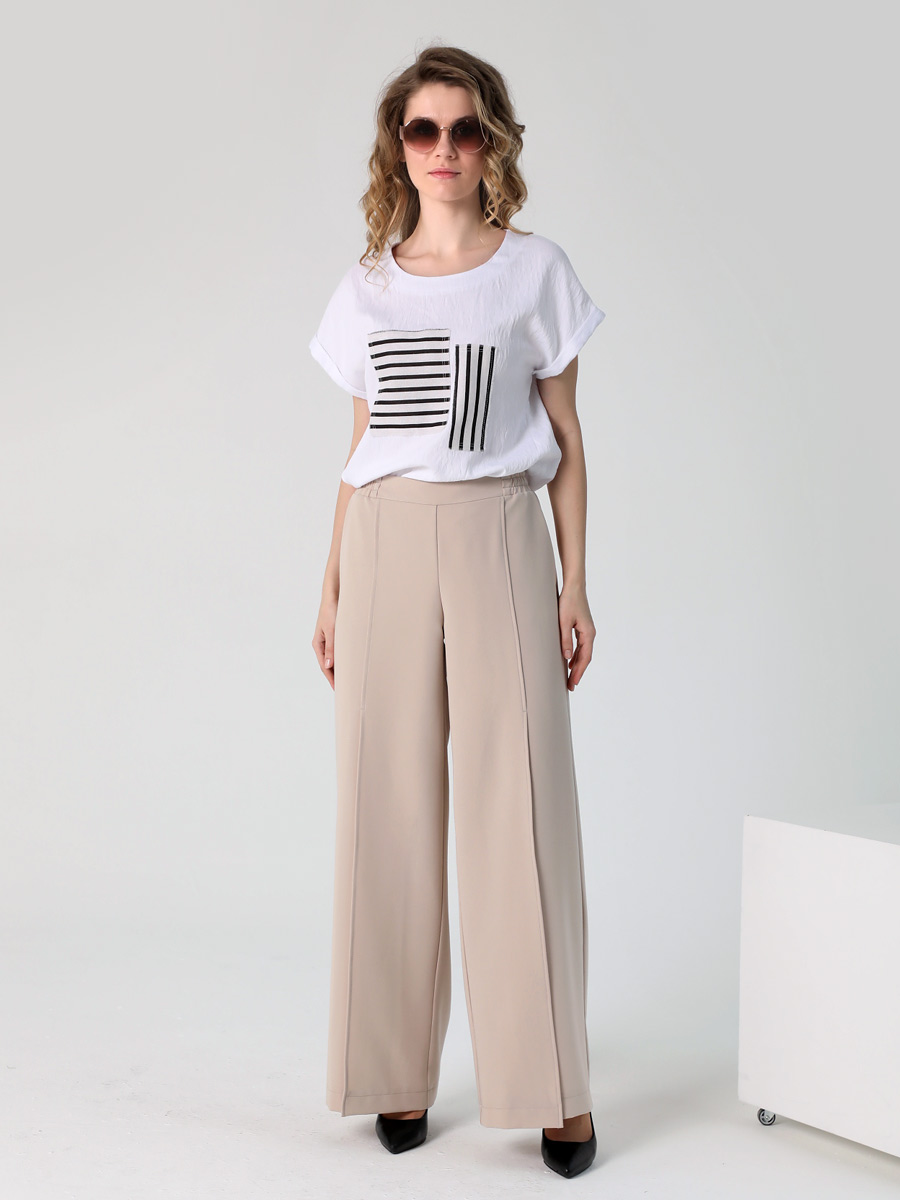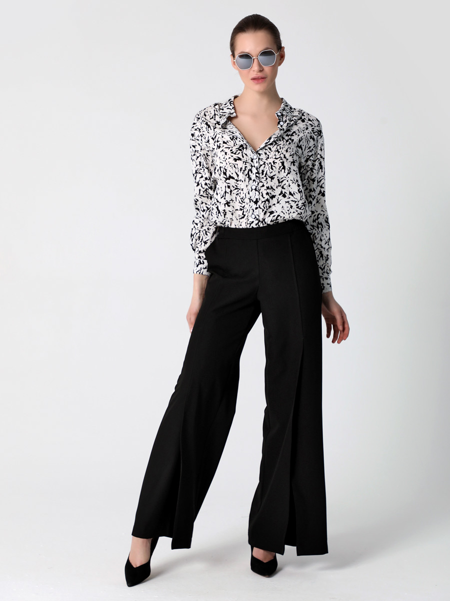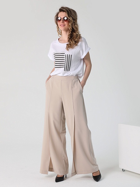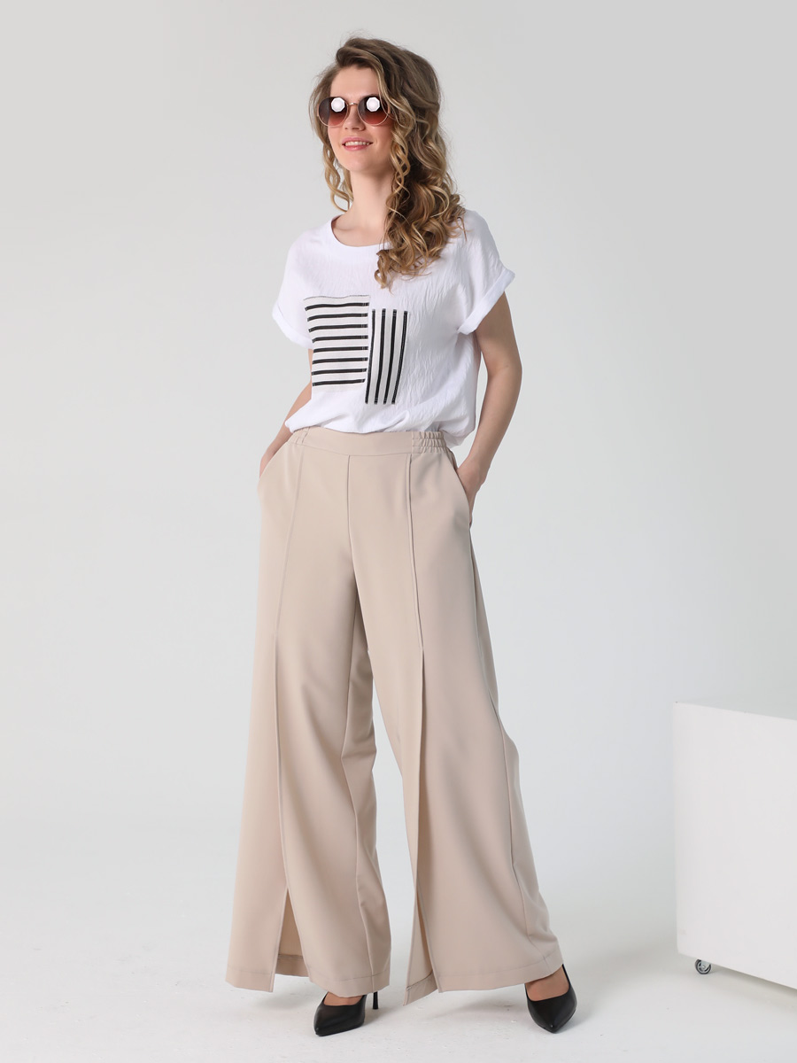 СКИДКА НА КОМПЛЕКТ! При покупке комплекта, скидка 20% на второй товар меньший по стоимости. Брюки палаццо - это неотъемлемая часть гардероба каждой стильной и уверенной в себе женщины. Особенностью широких длинных брюк являются разрезы спереди, которые придают еще больше элегантности и изящества вашему образу. На передних половинках обработаны косые карманы. Наши широкие штаны на резинке с высокой талией созданы для того, чтобы подчеркнуть вашу фигуру и придать ей изящный силуэт. Прямой крой классических брюк делает их универсальными и подходящими для любого случая. Вы сможете носить их как в офисе, так и на свидание или вечеринку. Женские брюки выполнены из качественных материалов, которые гарантируют сохранение первоначальной формы и цвета даже после многократных стирок.