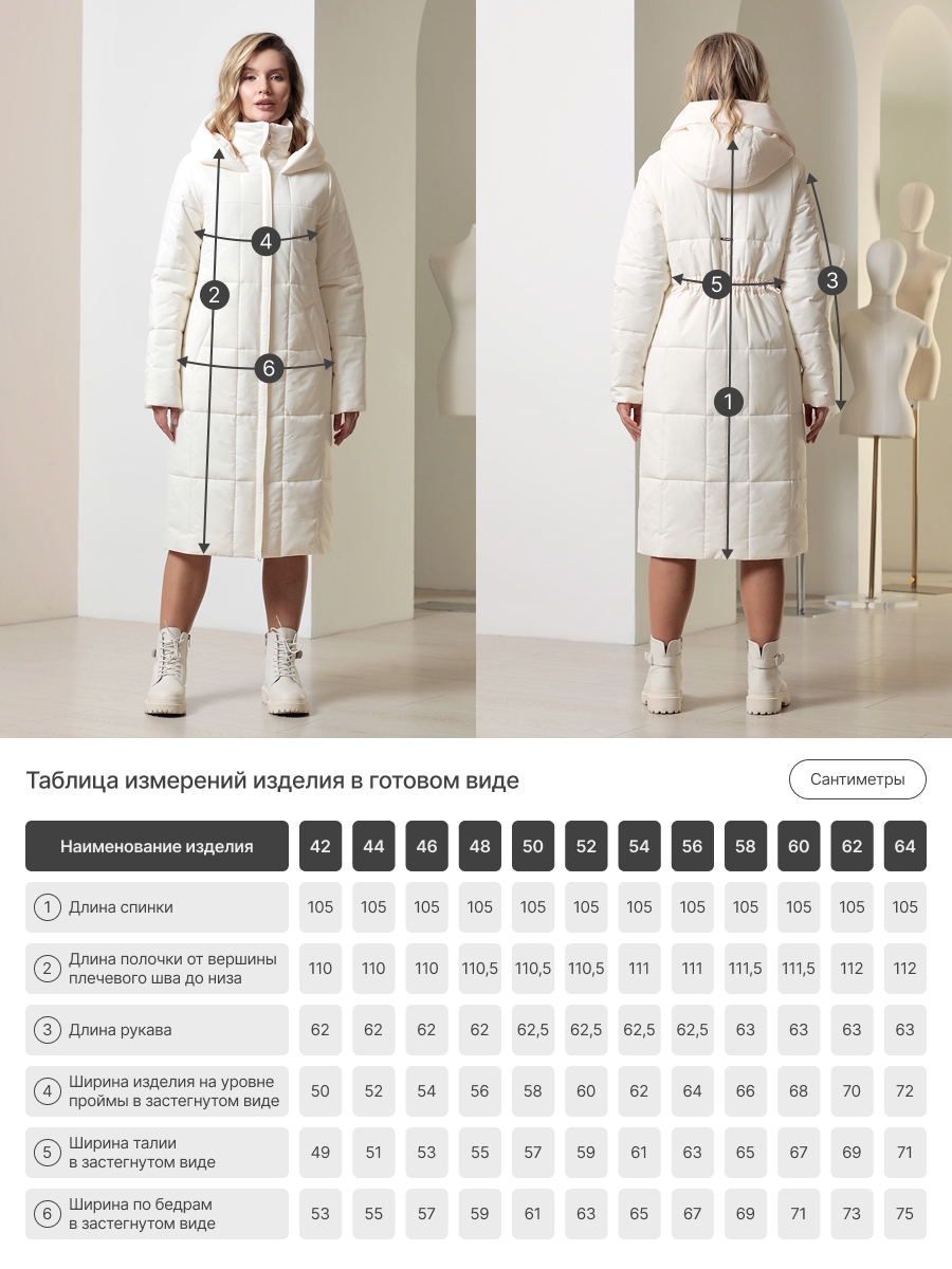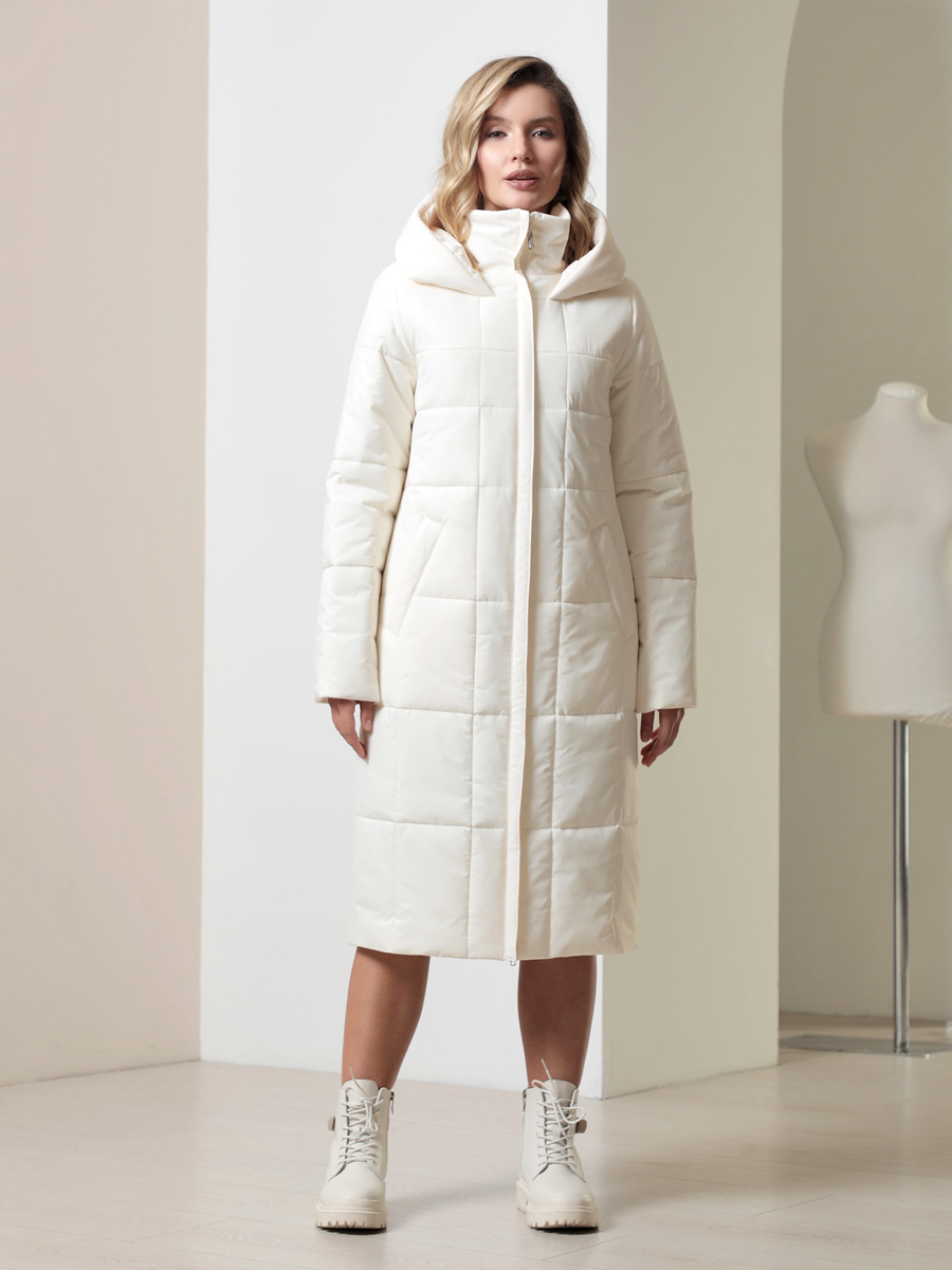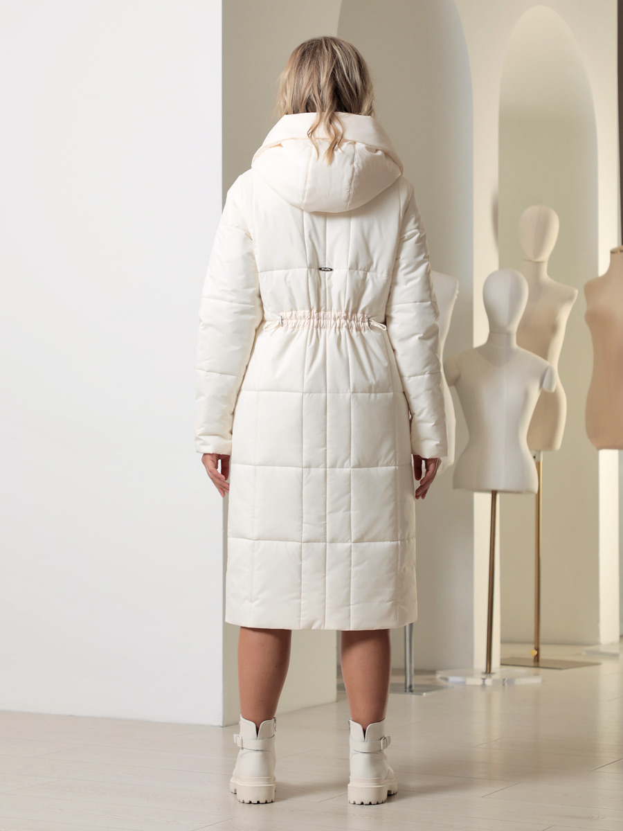 Длинное зимнее пальто с втачными рукавами и застежкой на двухзамковую молнию, которая расстегиванием снизу, позволяет регулировать ширину шага при подъеме и ходьбе. Воротник - уютная стойка; комфортный капюшон не отстегивается. Удобно расположенные карманы застегиваются на молнию. В подкладке изделия имеется нагрудный потайной карман, тоже на молнии. Прямой силуэт можно скорректировать затяжкой на талии, увеличив тем самым прилегание по спинке. Плащевая ткань, из которой выполнено изделие, имеет водоотталкивающую пропитку, выдерживающую небольшой дождь, снег и ветер. Хорошо зарекомендовавший себя современный утеплитель "Холлофайбер", плотностью 300 г/м, защитит от холода. Подкладка в пальто - в мелкую полоску. Силуэт, длина пальто и комбинация с вертикальной стежкой выгодно подчеркнет любую фигуру. Выбирайте понравившийся цвет пальто, и Ваша зима будет стильной, комфортной и элегантной!
